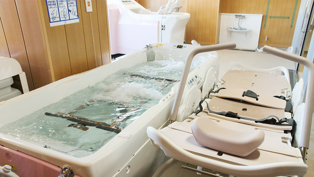 高齢者ケアの基本は「水」「食事」「排便」「運動」の4つの要素の連動であり、排泄の自立にとっても4つの要素が重要です。随時のトイレ誘導から排泄のリズムをつくるとともに、排便に効果的なオリゴ糖を取り入れることで、下剤を使用しない「自然排便」を促します。また、理学・作業療法士による「活動性の向上」を指向したリハビリを実施しています。入所者様ご自身の生活に密着した動作を取り戻し、日々の生活リハビリとして意欲的に取り組むことで、排泄の自立を促進し、尊厳ある生活へと援助しています。