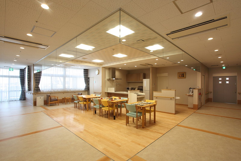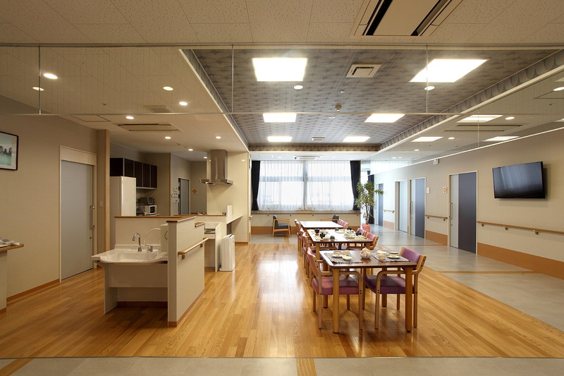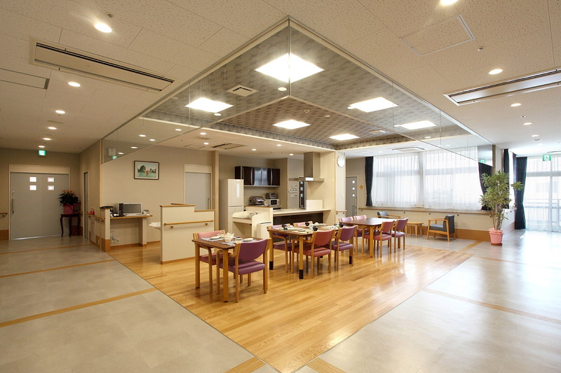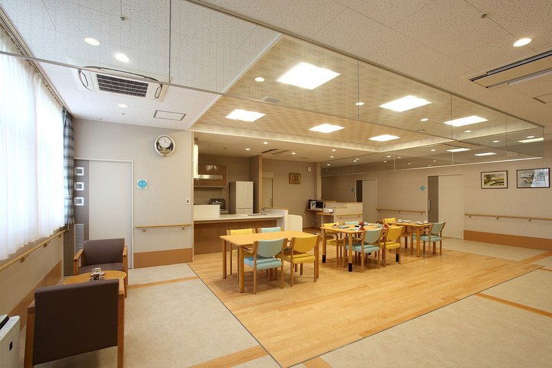 - 生活空間を10人または9人の単位でつくり、それぞれに食堂や談話コーナー、浴室を整備したユニット型ケアを提供します。ユニットの仲間や職員と家族のようななじみの関係を構築し、落ち着いた小集団生活を楽しんでいただけます。