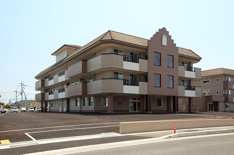 | 3階 | ユニットA(入所) 居室10室(各約13㎡)・共同生活室・調理コーナー ・談話コーナー・脱衣室洗濯室・浴室・トイレ・職員コーナー他 ユニットB(入所) 居室10室(各約13㎡)・共同生活室・調理コーナー ・談話コーナー・脱衣室洗濯室・浴室・トイレ・職員コーナー他 共用部分 談話コーナー・脱衣室・特浴室・介護職員室・共用トイレ・汚物処理室・倉庫他 |