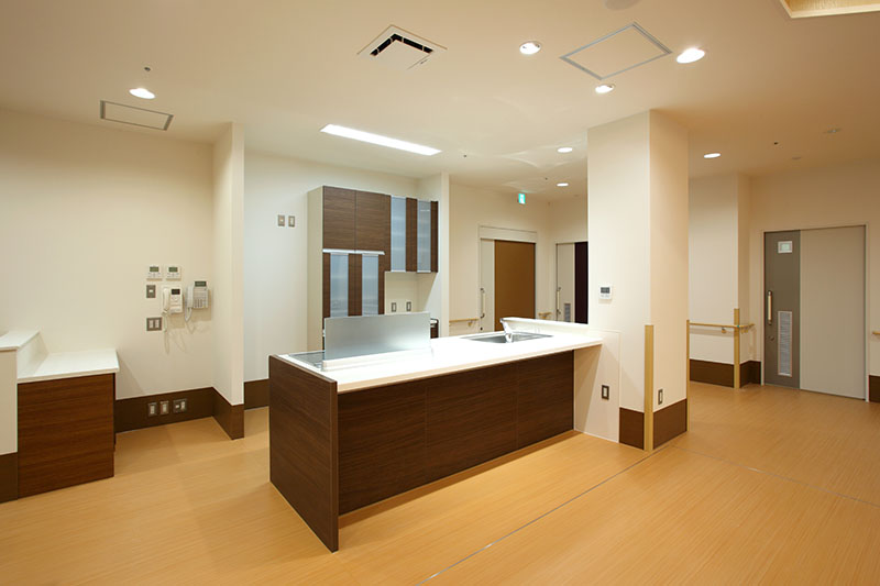 - 生活空間を10人または9人の単位でつくり、それぞれに食堂や談話コーナー、浴室を整備したユニット型ケアを提供します。ユニットの仲間や職員と家族のようななじみの関係を構築し、落ち着いた小集団生活を楽しんでいただけます。