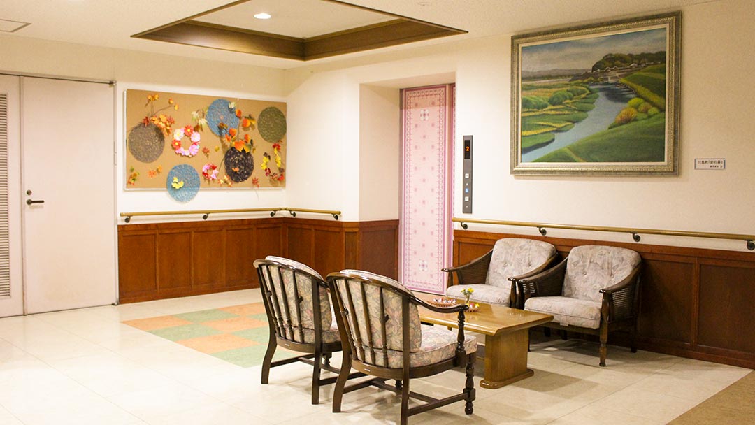 | 1階 | 看護職員室、受付事務室、診療室、静養室、機能回復訓練室、食堂、脱衣室、浴室、ステーション、個室、ショート個室、2人室、談話室、地域交流室、リネン室、洗濯室、洗濯整理コーナー、機械室、ドクター室、前室、トイレ |