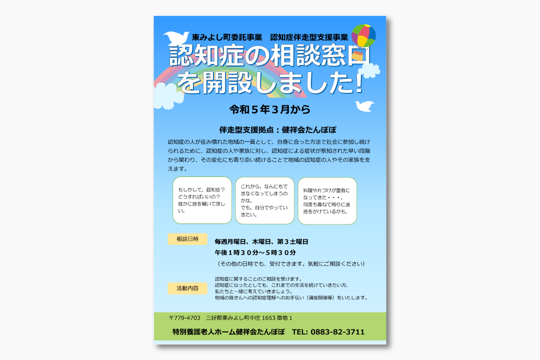 東みよし町より認知症伴走型支援事業の委託を受け、2023年3月から認知症の相談窓口を開設しました。
