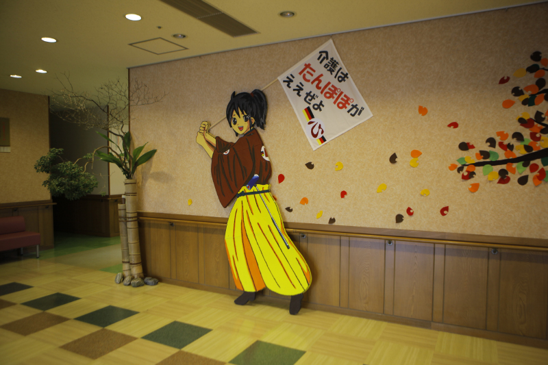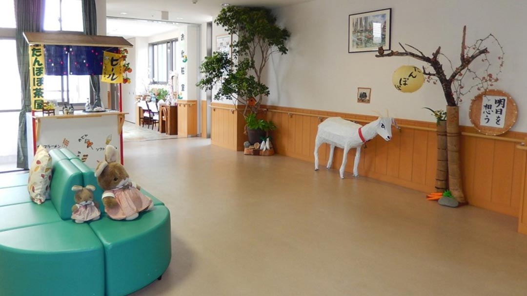 入所者様が安心して穏やかに過ごしていただけるように施設内で「ふるさと村」づくりを進めています。芋通しや干し大根づくりなど懐かしい農作業の中で季節を感じていただき、楽しんでいただきます。
