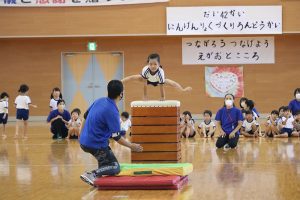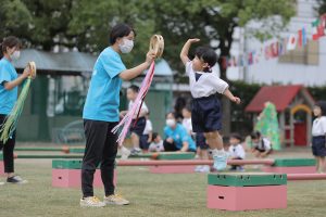 体操教室でご指導くださり、また当日もサポートくださった体操教室の河野磨講師、お手伝いくださった保護者の皆様、駐車場を提供いただいたみなと高等学園様、ありがとうございました。地域の皆様も、フェンス越しのご声援ありがとうございました。