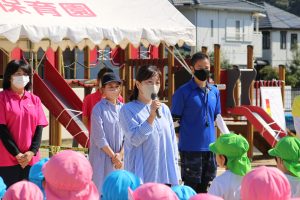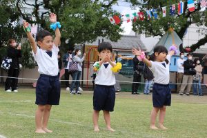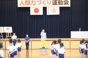 「みんなが元気に入場行進や園歌斉唱する姿を見て、コロナになんか負けていないなと安心しました。待ちに待った運動会です。最後まで諦めずに力一杯頑張ってくださいね。そしてお友達が頑張っているときには一生懸命応援してあげてください」