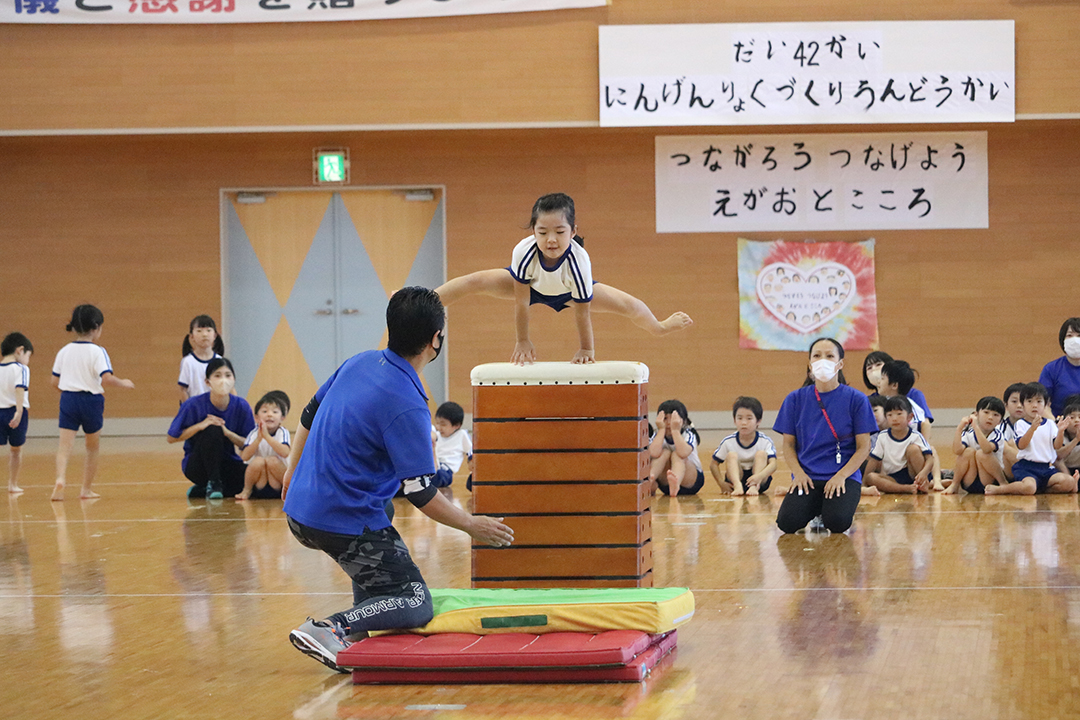 体操教室でご指導くださり、また当日もサポートくださった体操教室の河野磨講師、お手伝いくださった保護者の皆様、駐車場を提供いただいたみなと高等学園様、ありがとうございました。地域の皆様も、フェンス越しのご声援ありがとうございました。