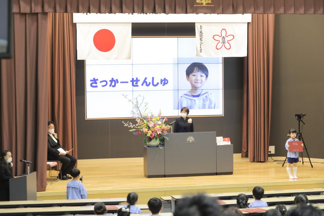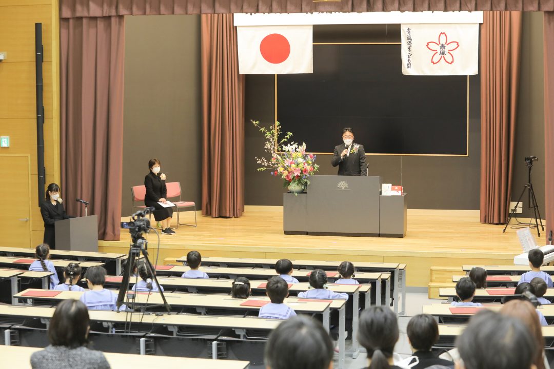 続いて保護者の方々に対して心よりのお悦びを申し上げ、感染症対策をしながらの子育ての労を労うとともに、園へのご協力ご支援に深謝し、「どんな環境下であっても、社会を生きる人としての基礎的な力を身につけてほしいという思いで取り組んでいます。まだまだコロナ禍は続くかもしれませんが、この経験を生かしてさらに進化してまいりたいと思っておりますので、今後ともご指導を賜りますようお願い申し上げます」と結びました。