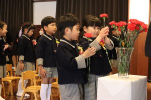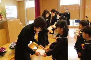保護者の代表の方から、「子どもたちの可能性を引き出すために素晴らしい環境を与えていただきましたこと、そして、保護者である私たちと同じように愛情を注ぎ、私たちと二人三脚で子どもたちを大切に育んでくださったことに心から感謝申し上げます。本当にありがとうございました」とご挨拶をいただきました。
