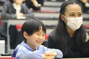 さきほど皆さんはそれぞれの夢を発表してくれました。理事長先生は保育園のときは飛行機のパイロット、小学生のときにはサッカー選手になりたいと思っていました。そんな風に夢は変わっていくかもしれませんが、変わっていいのです。大切なのは、持ち続けること。いつも夢や目標をに向かって挑戦していってください」と子どもたちに語りかけました。
