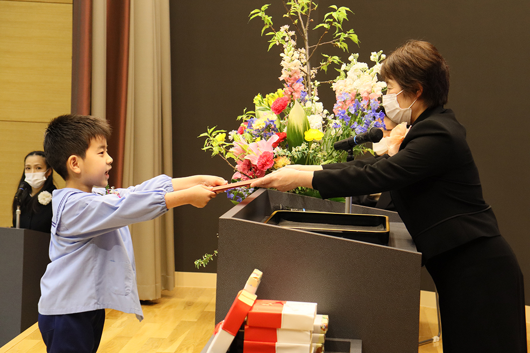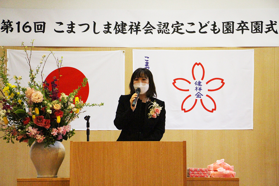 続いて保護者の方々に対して心よりのお悦びを申し上げ、感染症対策をしながらの子育ての労を労うとともに、園へのご協力ご支援に深謝し、「どんな環境下であっても、社会を生きる人としての基礎的な力を身につけてほしいという思いで取り組んでいます。まだまだコロナ禍は続くかもしれませんが、この経験を生かしてさらに進化してまいりたいと思っておりますので、今後ともご指導を賜りますようお願い申し上げます」と結びました。