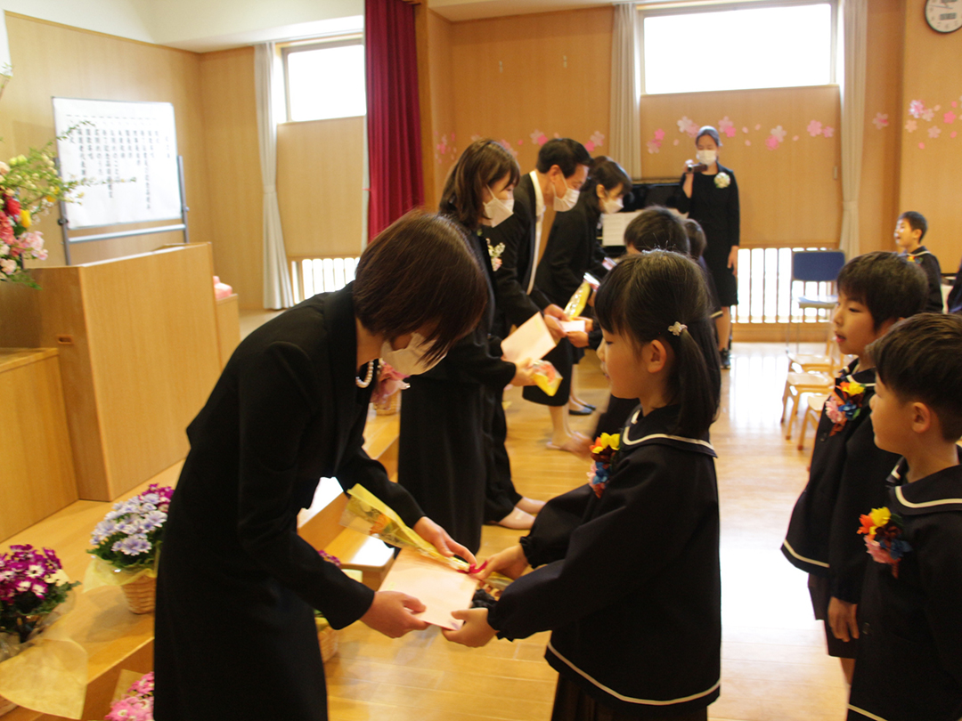 「この3年間、コロナウイルスのためにマスクをしなければならなかったり、運動会やクリスマス会も家族みんなに来てもらえなかったり、辛い思い、寂しい思いをしてきましたね。でも、今、皆さんの明るくたくましい姿をみて、コロナに鍛えられ、大変だったことが力になったんだな、小学校に行っても心配ないなと思っています。