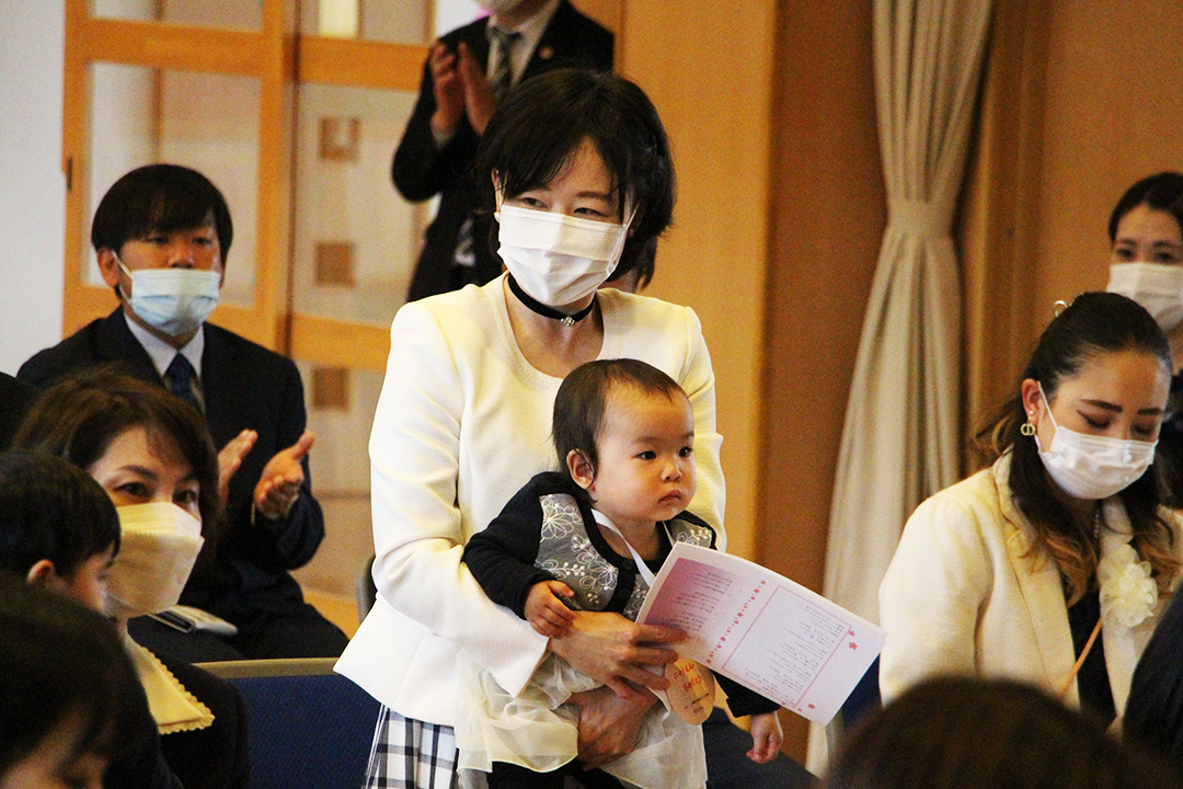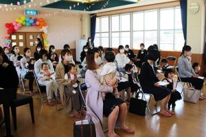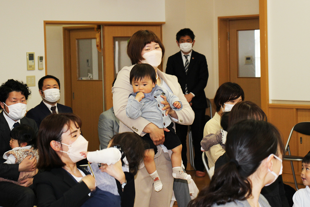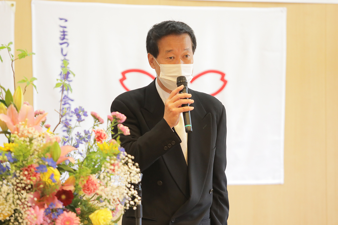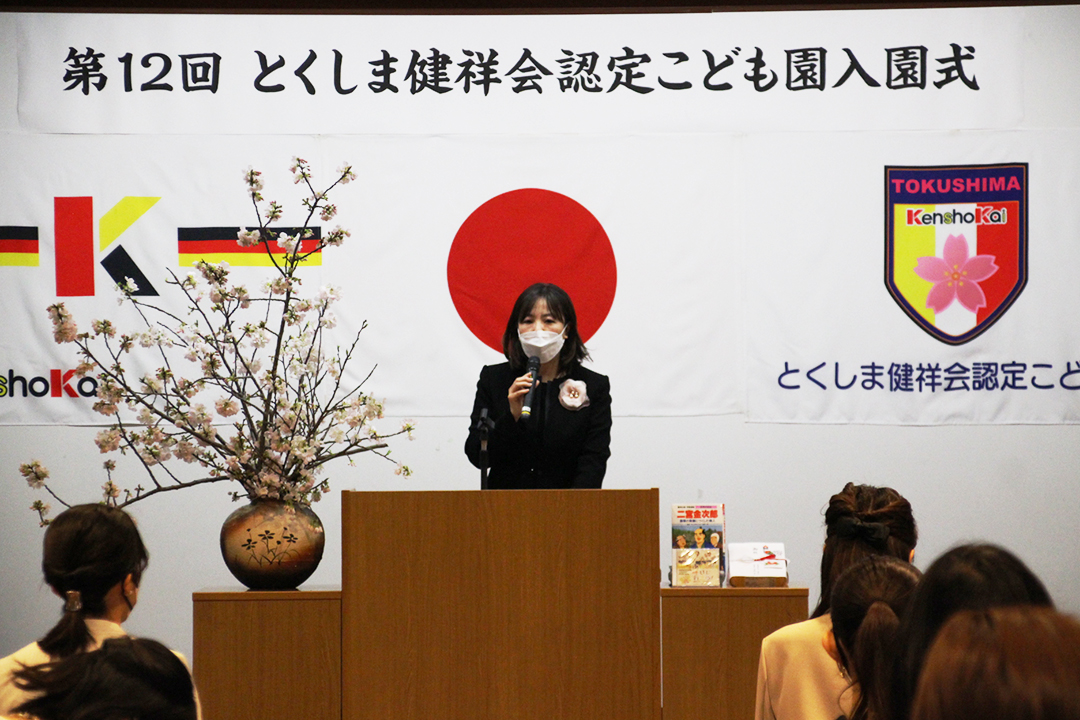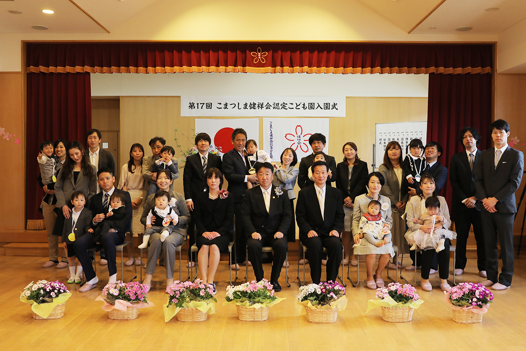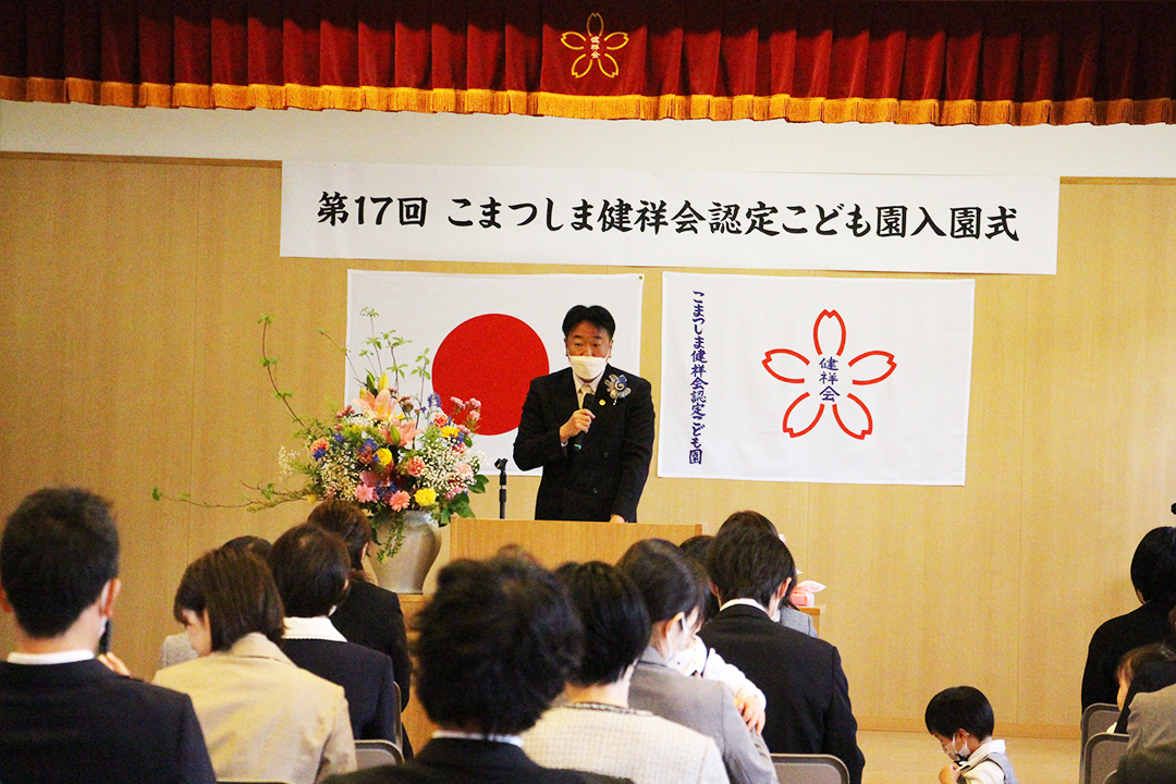 小松島市では、昨年度から『子育て世代応援プロジェクト』という施策に取り組んでいます。保育料の軽減、高校生までの医療費の無料化、また、年内を目標に、SL記念広場に大きなインクルーシブ遊具の設置を予定しています。これからもどんどん小松島市は変化していき、皆様の子育てをお支えしたいと思っていますのでどうか楽しみにしてください。」とご祝辞をいただきました。
