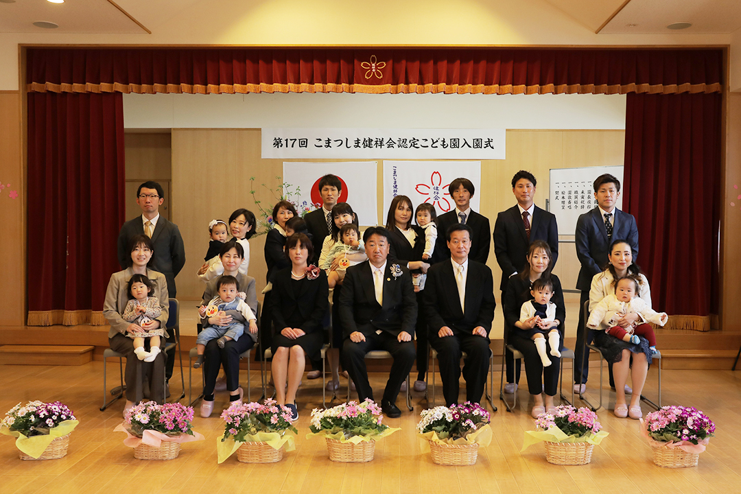 この春、グループ4園に迎えたのは、育英認定こども園13名、青嵐認定こども園18名、とくしま健祥会認定こども園27名、こまつしま健祥会認定こども園21名、合わせて79名の子どもたち。楽しい園に毎朝元気な笑顔で登園してきてください!保護者の皆様、ご不安なことはなんでもご相談いただき、子どもたちのためにしっかり連携してまいりましょう。地域の皆様には変わらぬご支援ご協力を賜りますよう、本年度もどうぞよろしくお願いいたします。