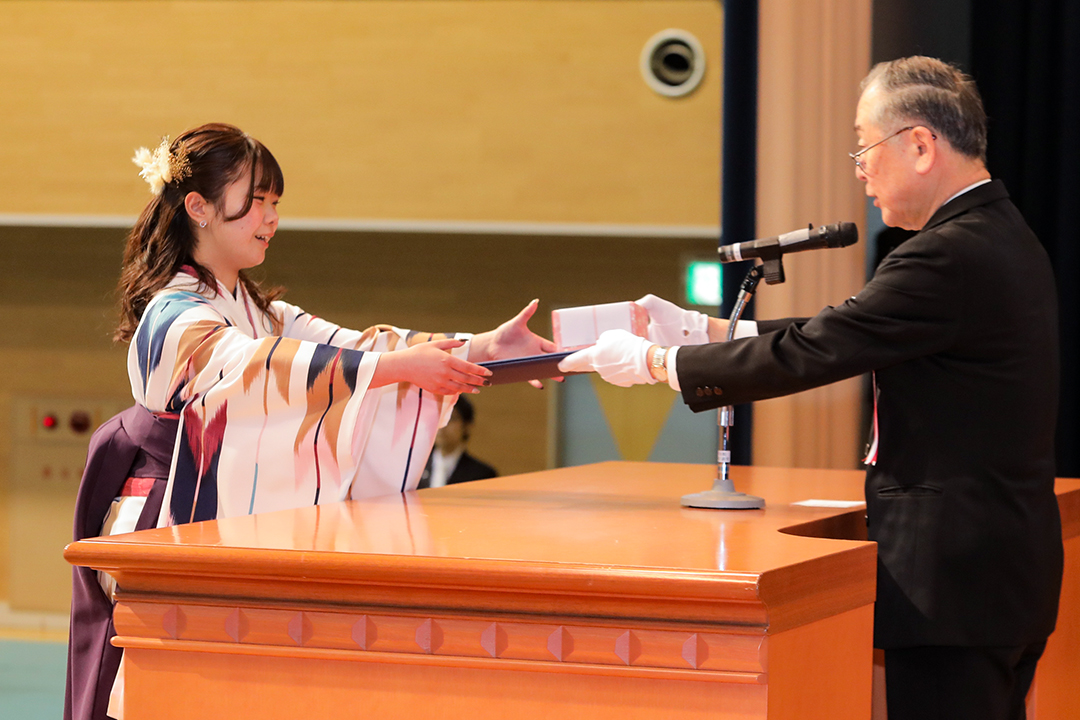 2024年3月9日、専門学校健祥会学園で第27回卒業証書授与式が挙行されました。それぞれの専門課程を終え、学び舎を巣立ったのは、介護福祉学科31名、理学療法学科31名、作業療法学科20名、保育学科29名、計111名。学園創立来、世に送り出した専門職は今年度で合計3,277名となりました。