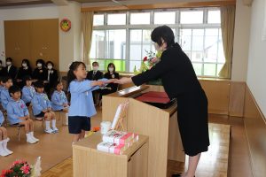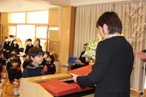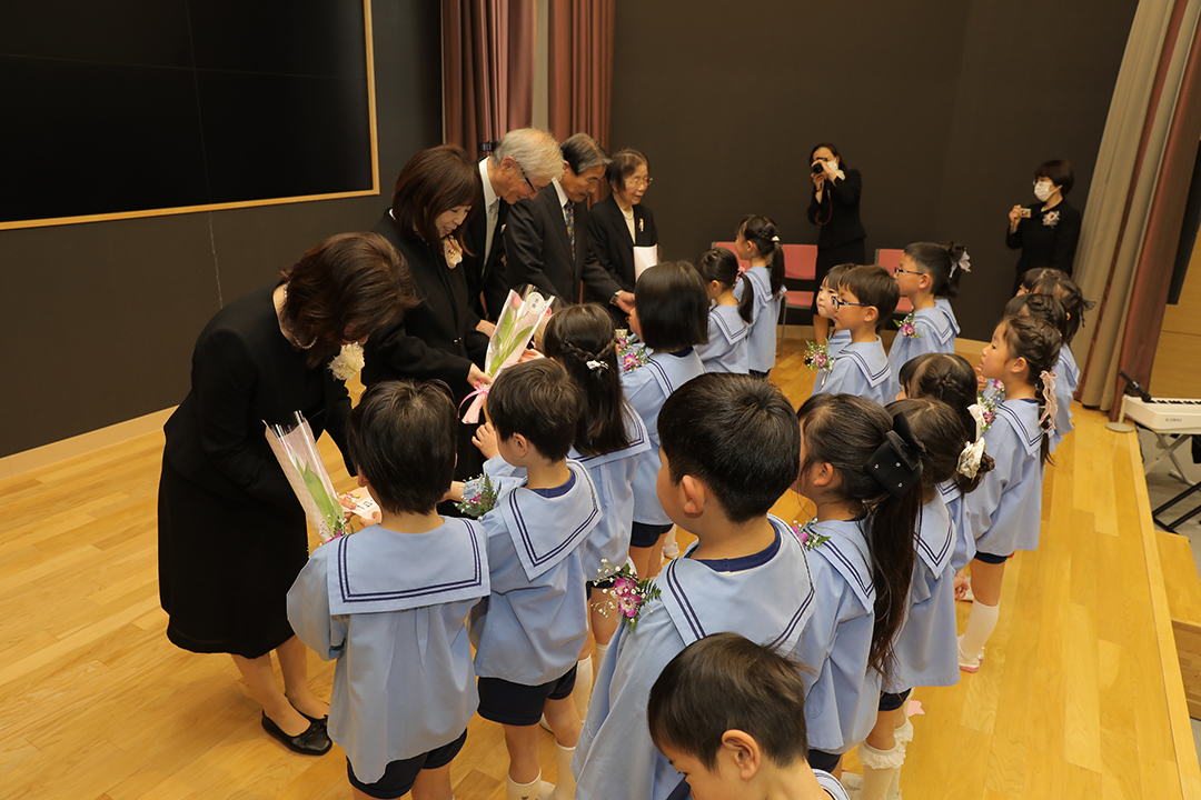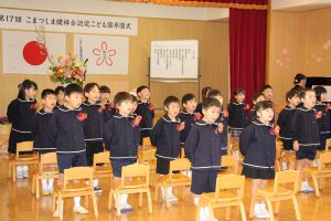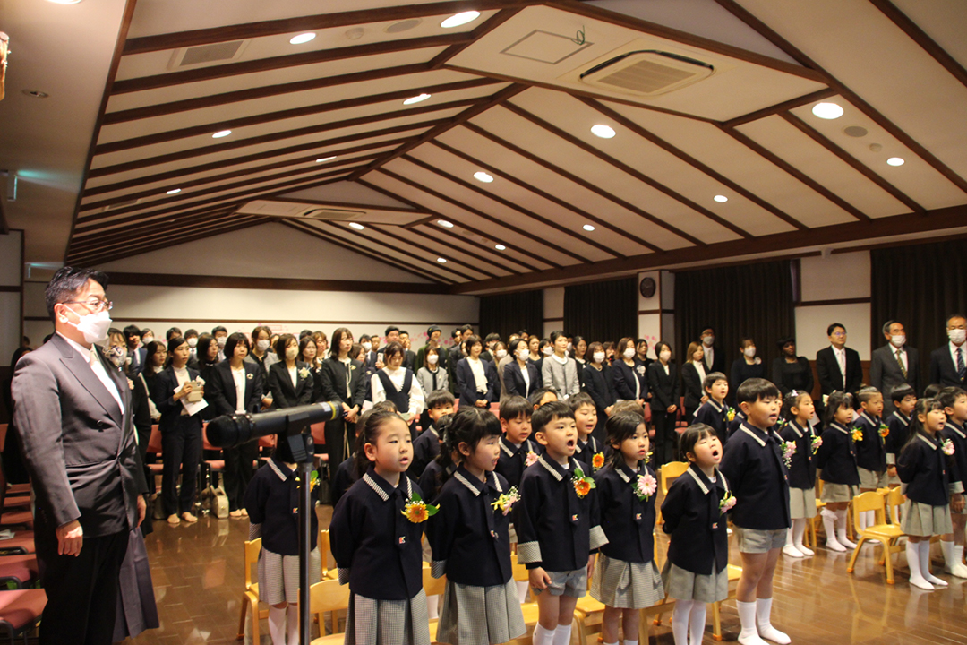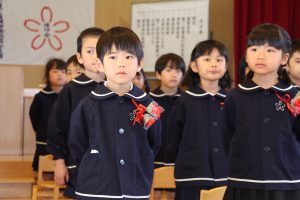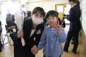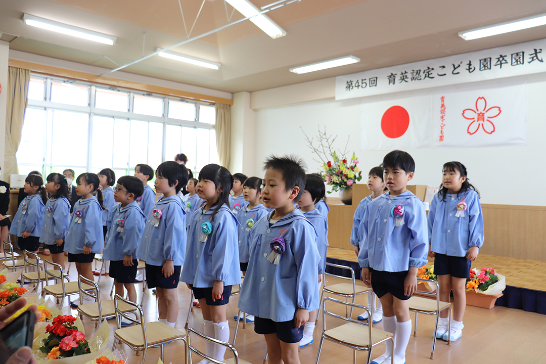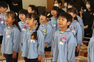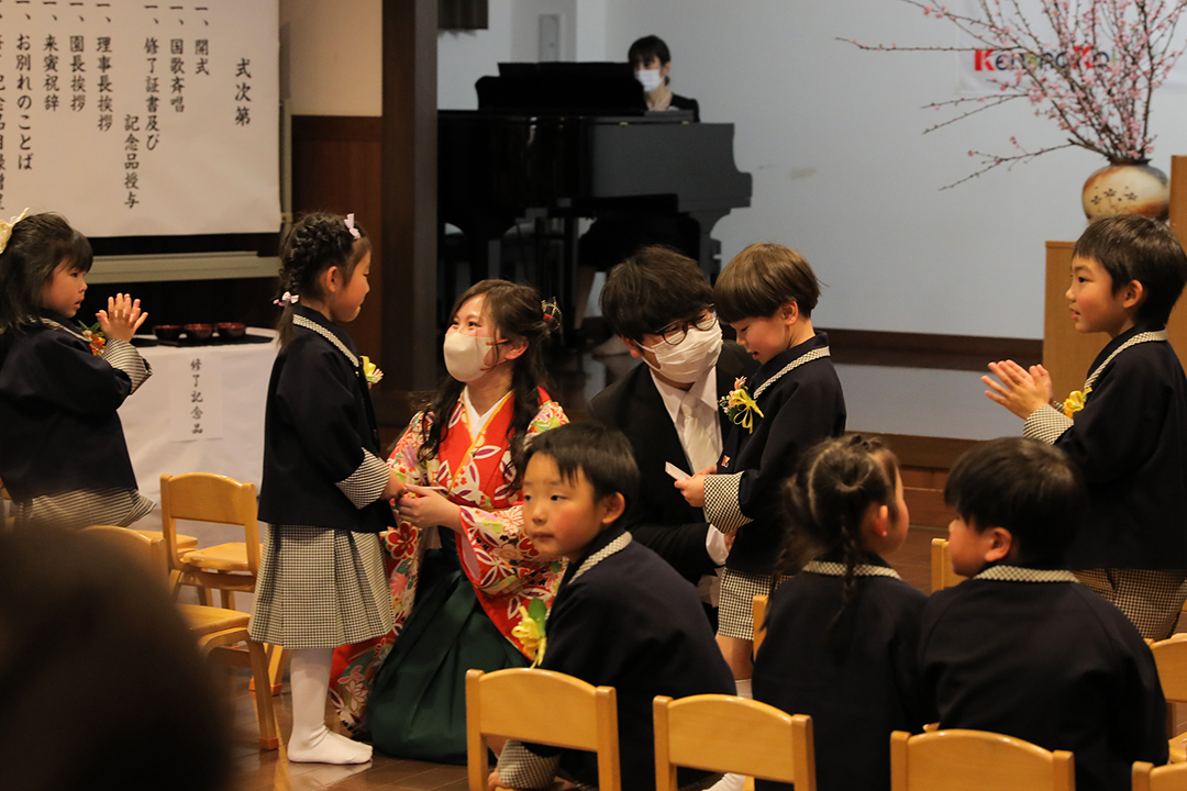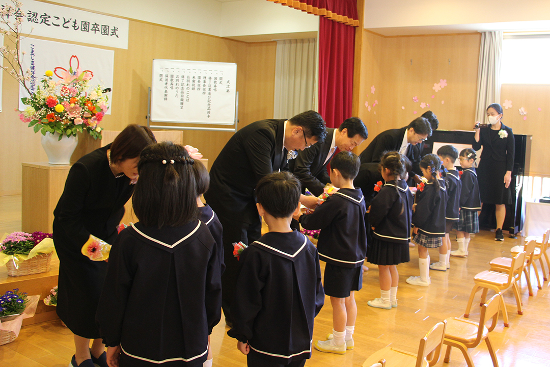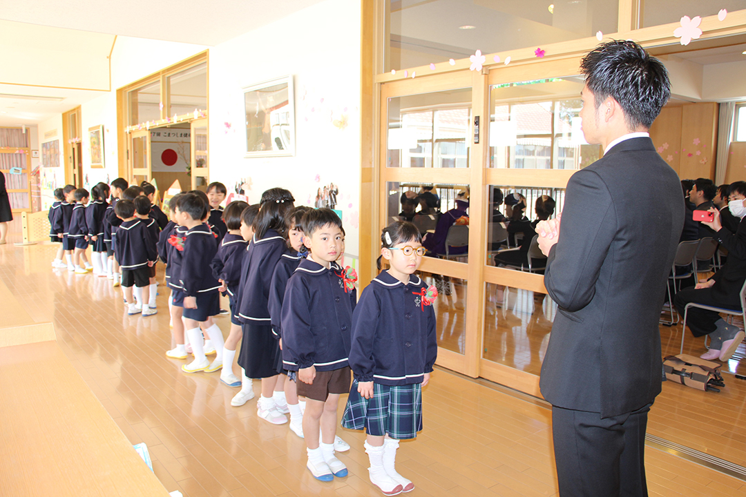 卒園児の皆さん、園での毎日には、コロナウイルスのために我慢しなければならないこともたくさんありましたが、今日はマスクを外した晴れやかな笑顔で多くの方に出席いただき、皆さんの立派な姿を見ていただくことができました。小学校に行っても元気で、たくさん遊び、たくさん学んでください。