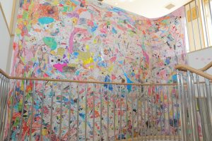 卒園児のお別れのことばと歌で園での日々を懐かしくたどり、最後に元気いっぱい園歌を斉唱して卒園式を終えました。フィナーレでは卒園児が作ったタイダイ染めのハンカチをご来賓の皆様にプレゼントしました。