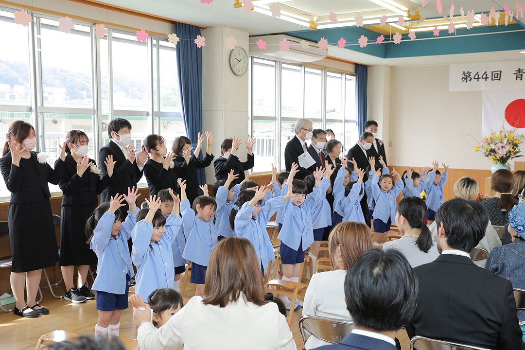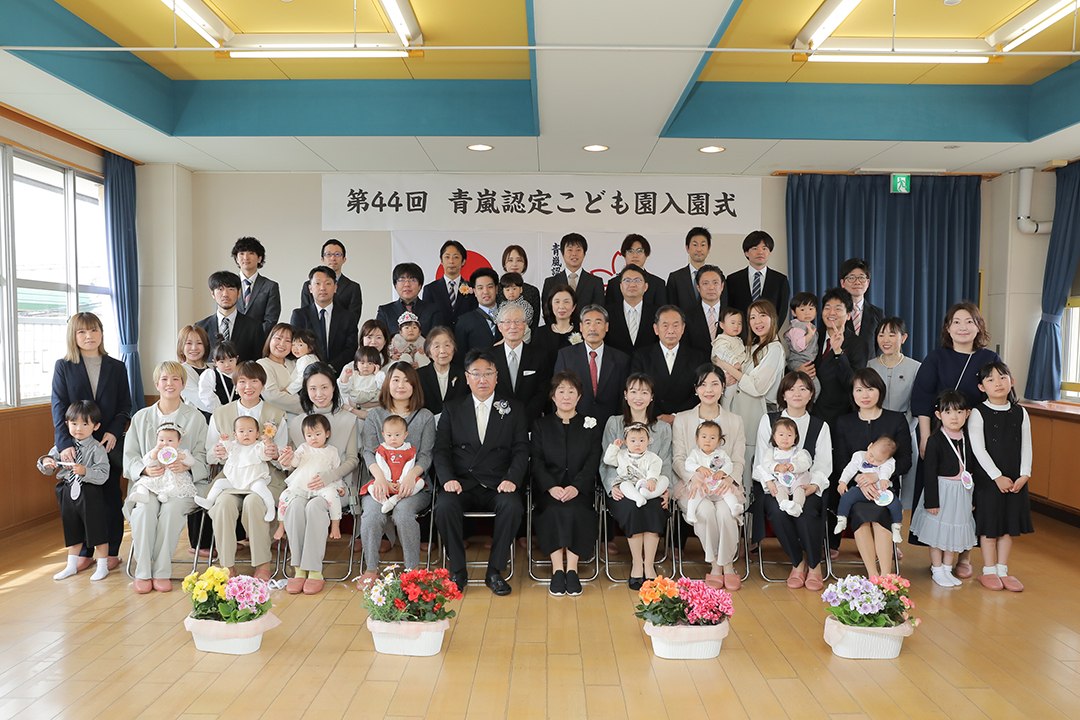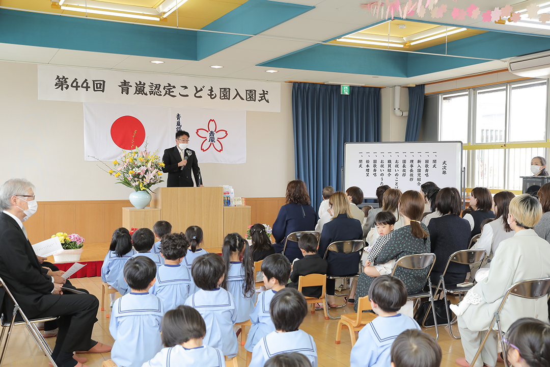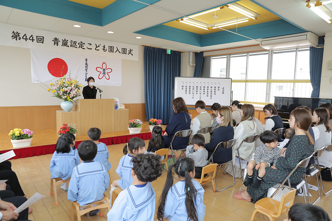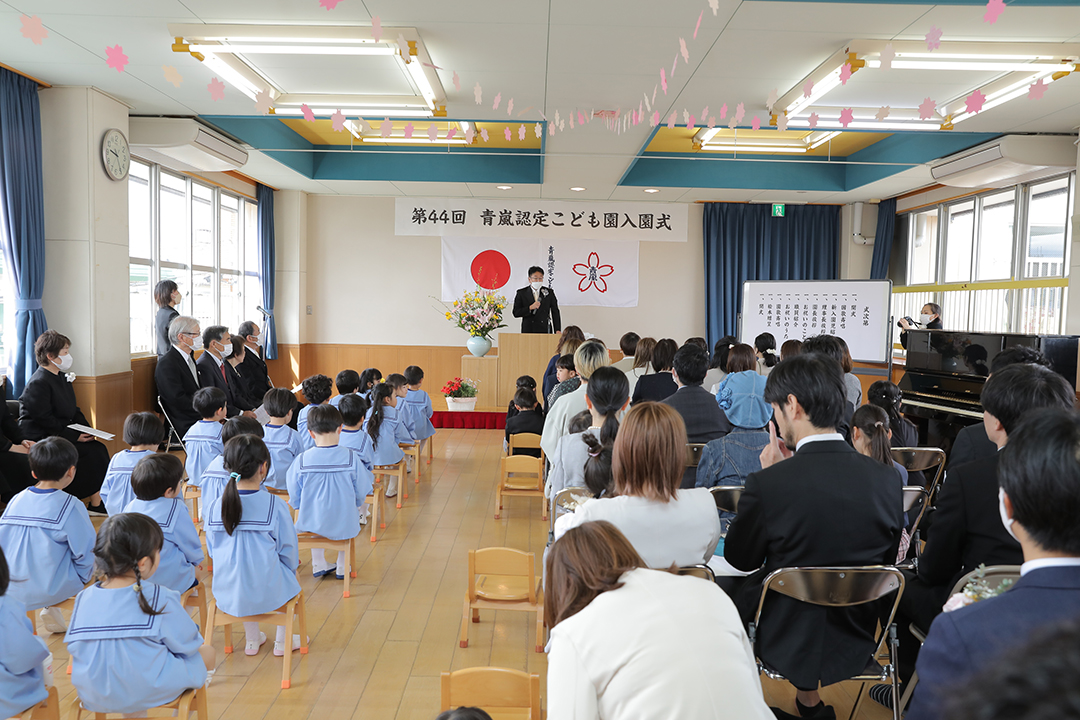 街中のそこここで桜が満開となった4月4日、健祥会グループの青嵐認定こども園に18名の新入園児を迎え、第44回入園式が行われました。4年ぶりに在園児が出席し、新しいお友達をお祝いしました。