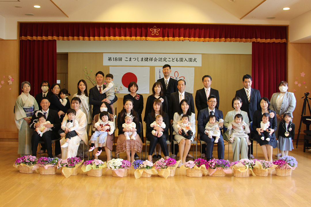 とくしま健祥会認定こども園は同じく4日、育英認定こども園とこまつしま健祥会認定こども園は5日に、それぞれ自園で入園式を行い、4園合わせて100名の子どもたちを迎えました。保護者の皆様、地域の皆様にはあたたかなご支援ご協力を賜りますよう、本年度もどうぞよろしくお願いいたします。