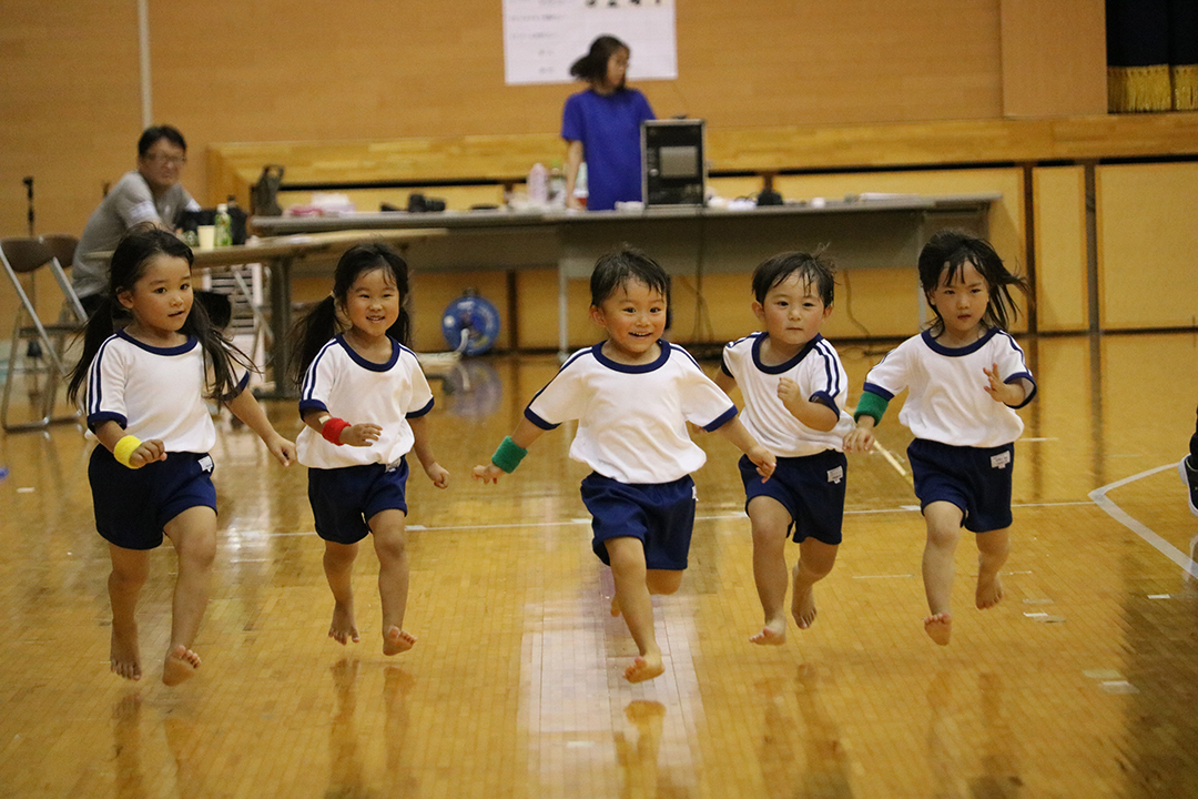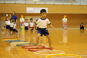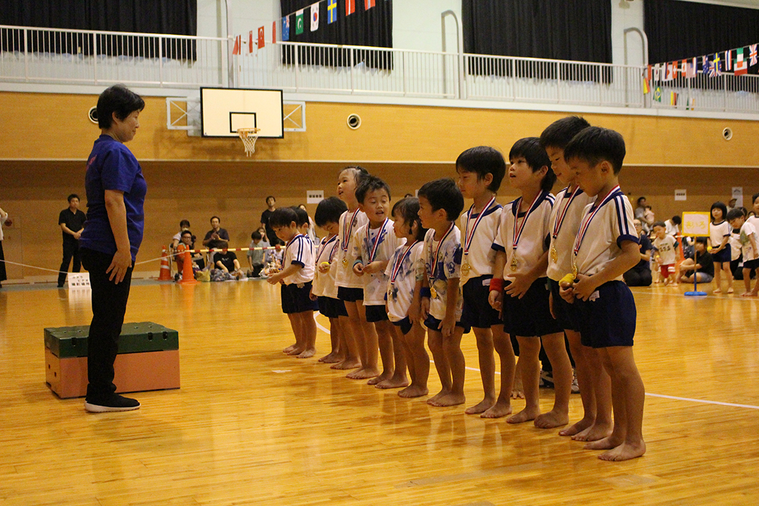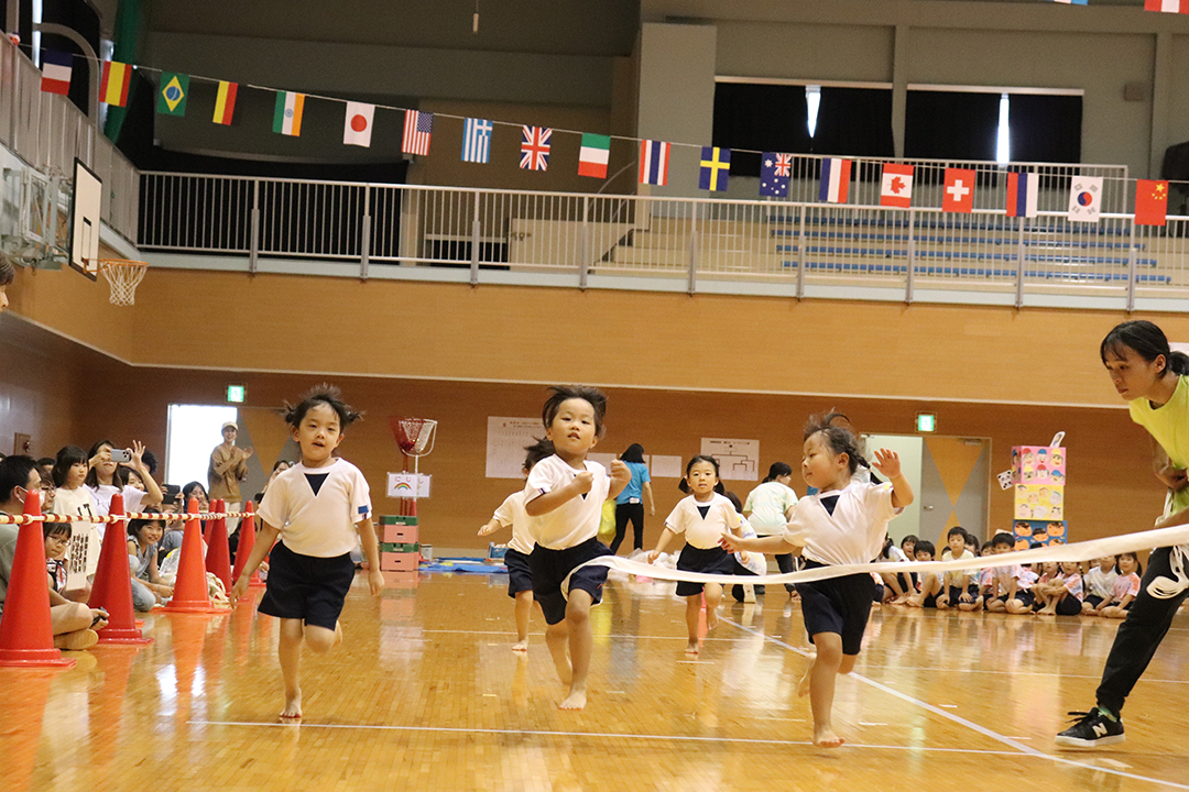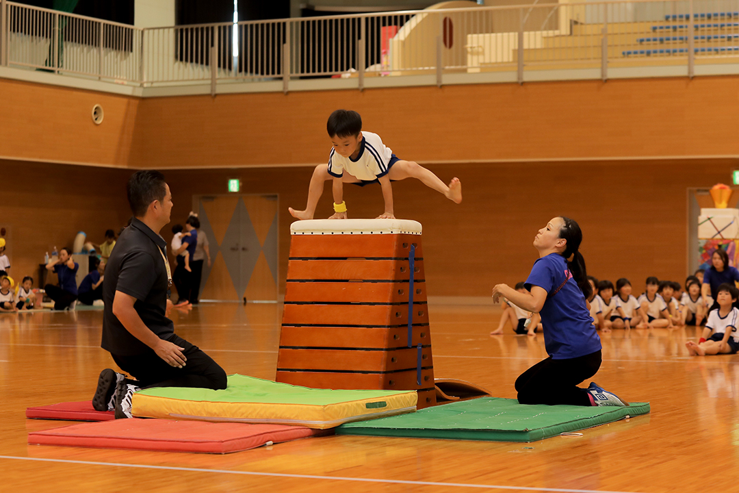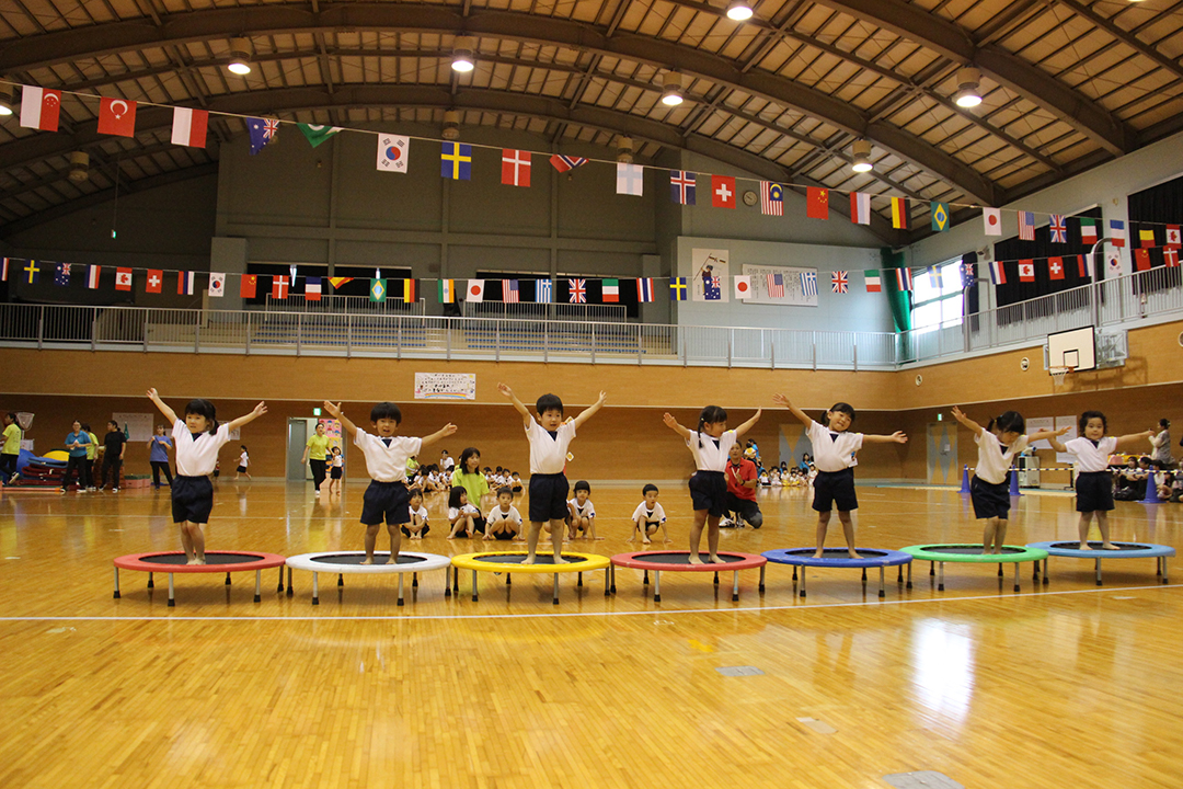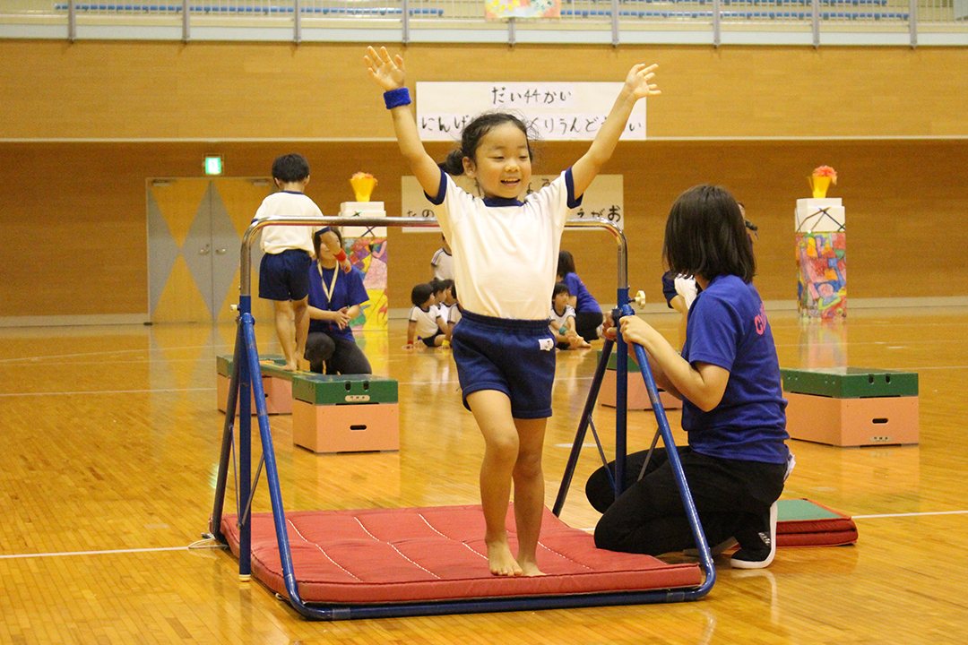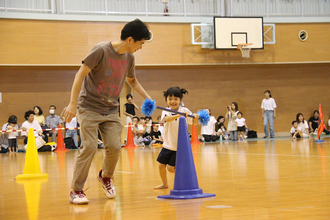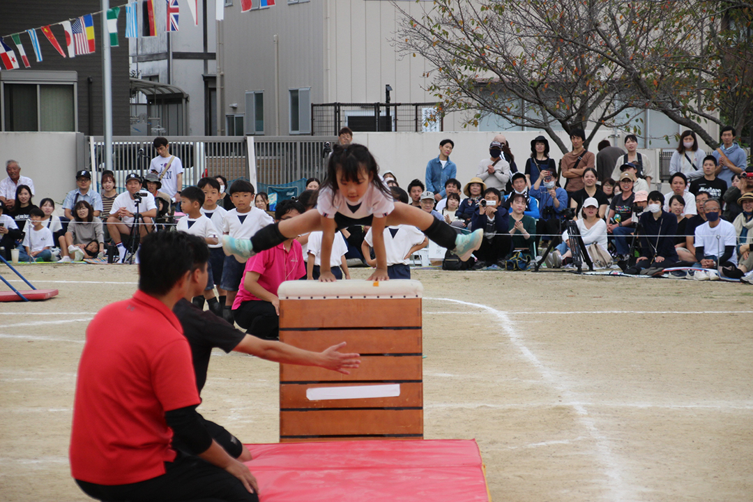 運動会は、子どもたちにとっても保護者の皆様にとっても最も楽しみな行事のひとつです。年齢ごとの発達にそって、跳び箱や鉄棒、縄跳びやかけっこ、ダンスなどの種目に精一杯の力で臨み、日頃の体操教室で鍛えてきた腕前を披露し、保護者の皆様を楽しませてくれました。