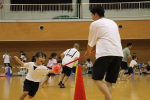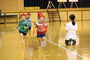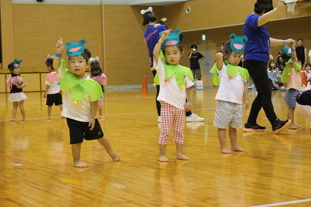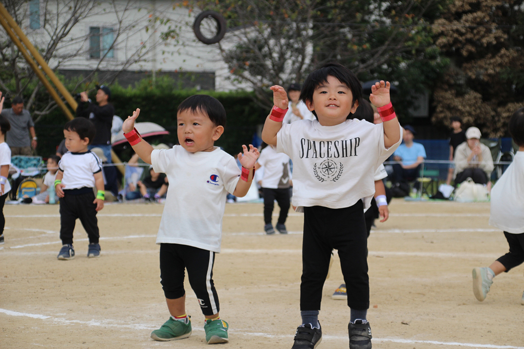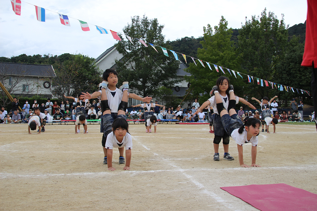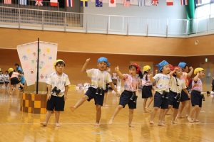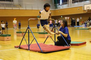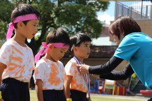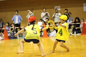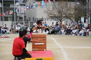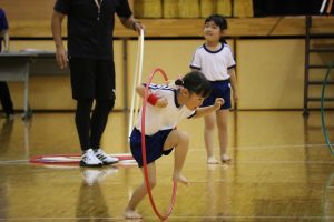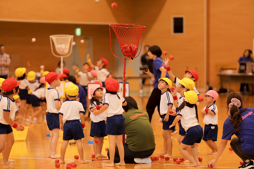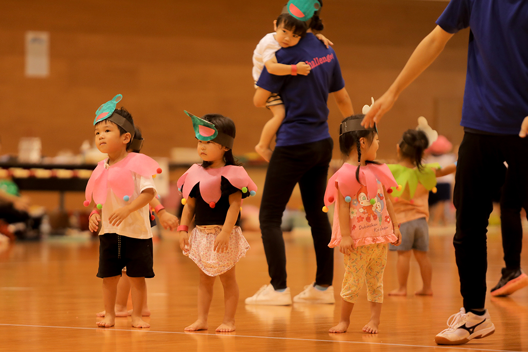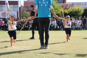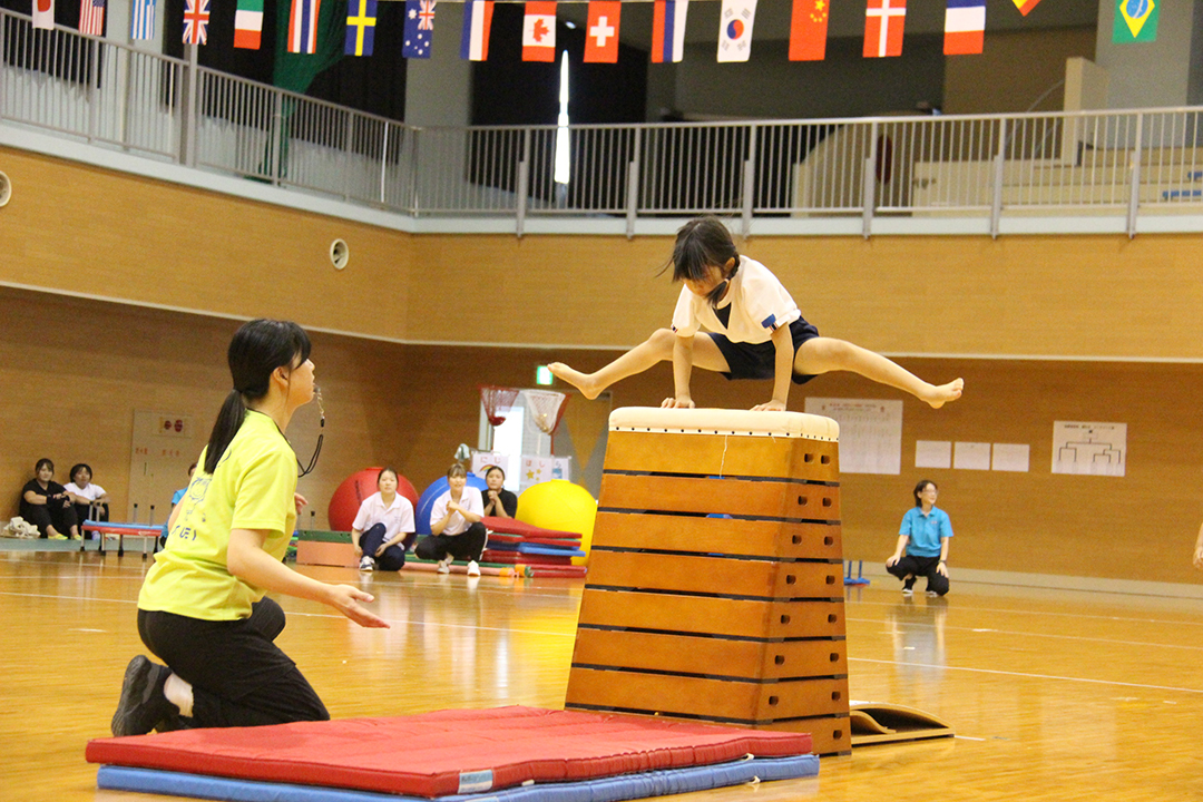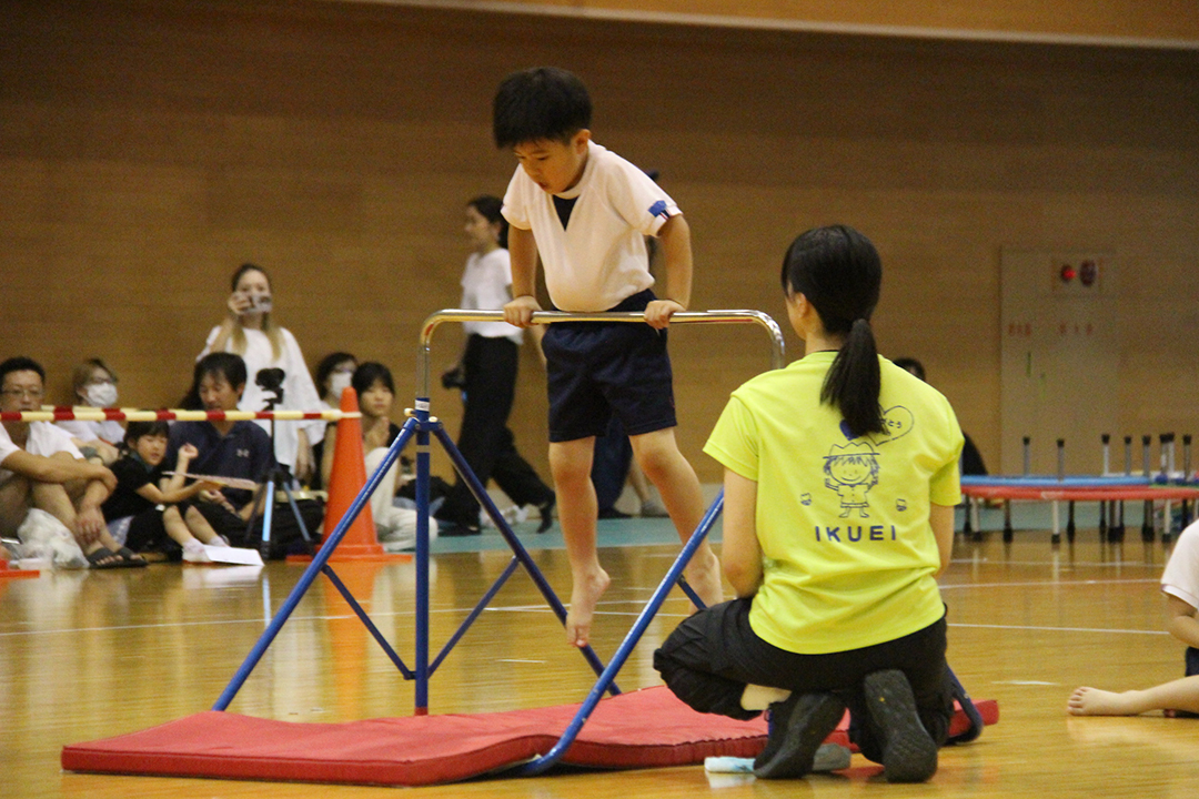 運動会は、子どもたちにとっても保護者の皆様にとっても最も楽しみな行事のひとつです。年齢ごとの発達にそって、跳び箱や鉄棒、縄跳びやかけっこ、ダンスなどの種目に精一杯の力で臨み、日頃の体操教室で鍛えてきた腕前を披露し、保護者の皆様を楽しませてくれました。