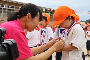 子どもたちの頑張る表情っていいものですね。負けて悔し涙もまたよしです。そして、勝負そのものよりも頑張ること、讃えあうことが大切。だから「人間力づくり運動会」なのです。