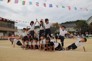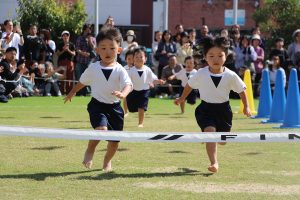 さあ、運動会です。健祥会グループの4認定こども園で9月21日から10月19日にわたって、週末ごとに「人間力づくり運動会」が行われました。青嵐認定こども園と育英認定こども園は健祥会グループ本部の健祥会パートナーで、こまつしま健祥会認定こども園、とくしま健祥会認定こども園は自園園庭での開催です。