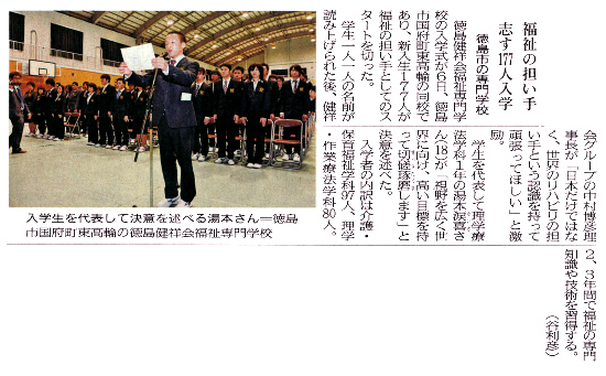 第18回 徳島健祥会福祉専門学校入学式