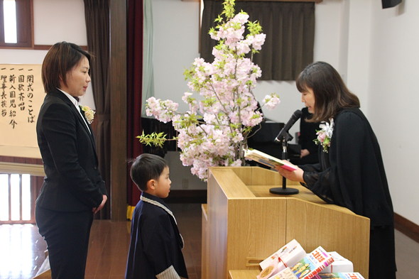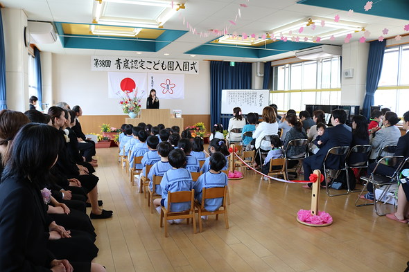 そよ風に桜吹雪が舞う、麗らかな春の日、徳島市の育英認定こども園、青嵐認定こども園、とくしま健祥会保育園、小松島市のこまつしま認定こども園に、合わせて79名の園児を迎え、入園式が行われました。