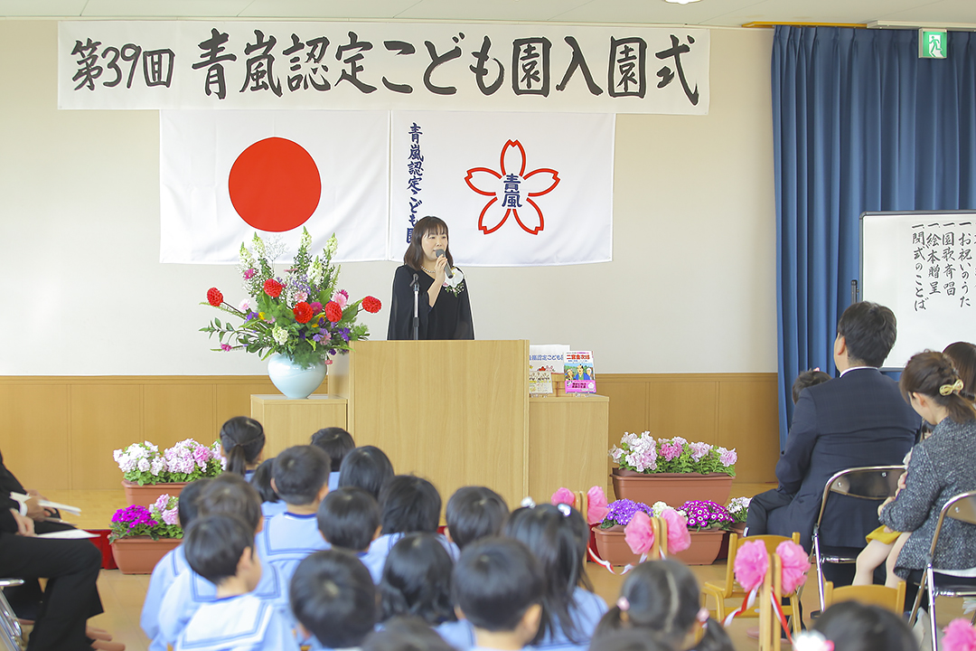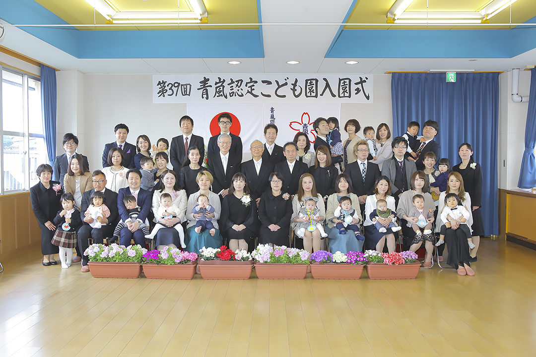 4月3日、満開の桜と5歳児のお兄さんお姉さんに迎えられ、健祥会グループの青嵐認定こども園に16名の新入園児が仲間入り。第39回入園式が行われました。