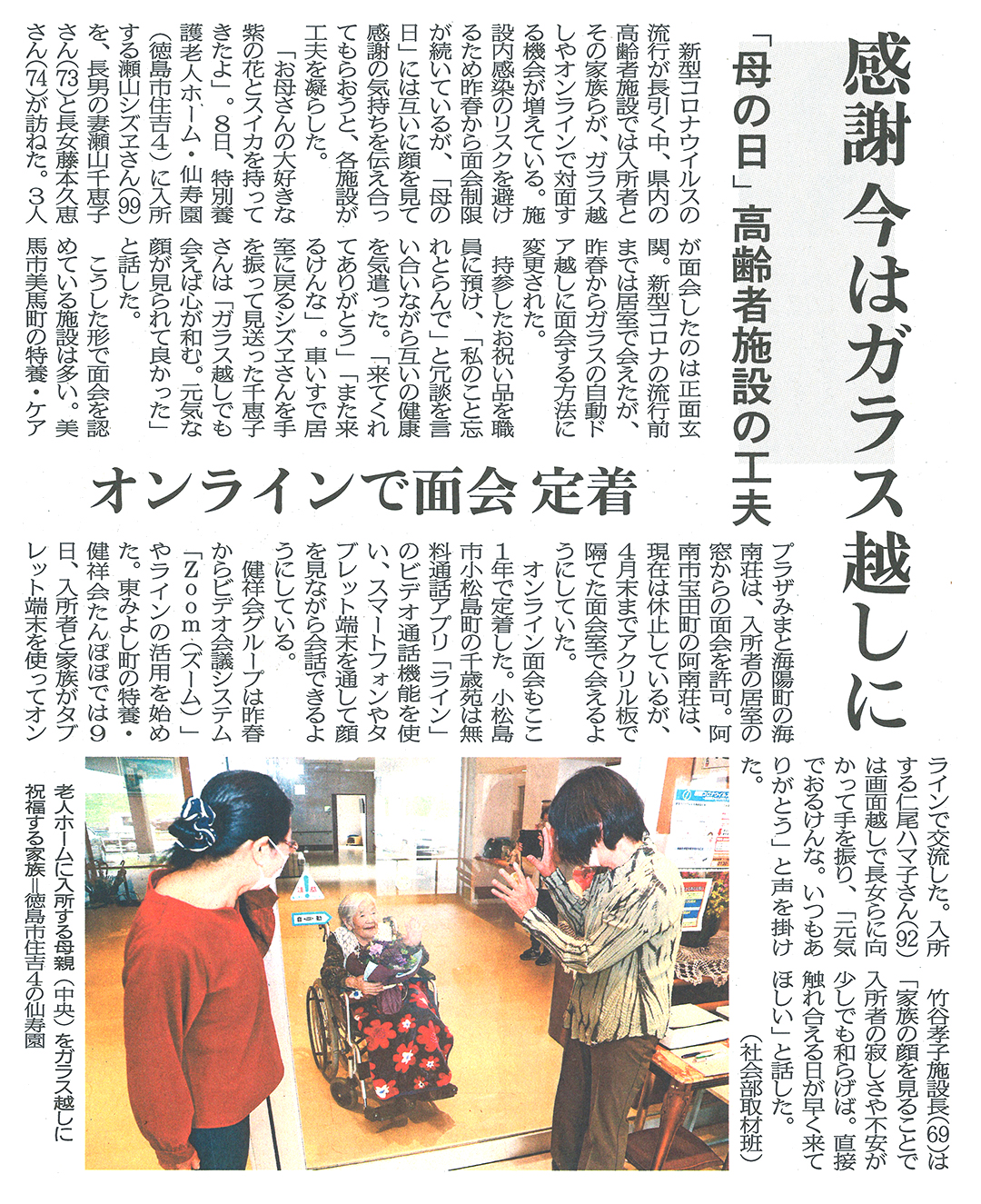 この記事は公開から1年以上経過しています メディア掲載記事 2021年5月10日(月) 感謝 今はガラス越しに | 徳島新聞 ■徳島新聞(2021年5月10日朝刊) [記事公開日]2021/05/10(月) 健祥会たんぽぽ 感謝 今はガラス越しに | 徳島新聞 新しい記事 引き続き、「優良健康づくり事業所(金)」に認定 古い記事 Q&A コロナワクチン高齢者接種本格化 肩を出しやすい服装で | 徳島新聞 過去の記事へ