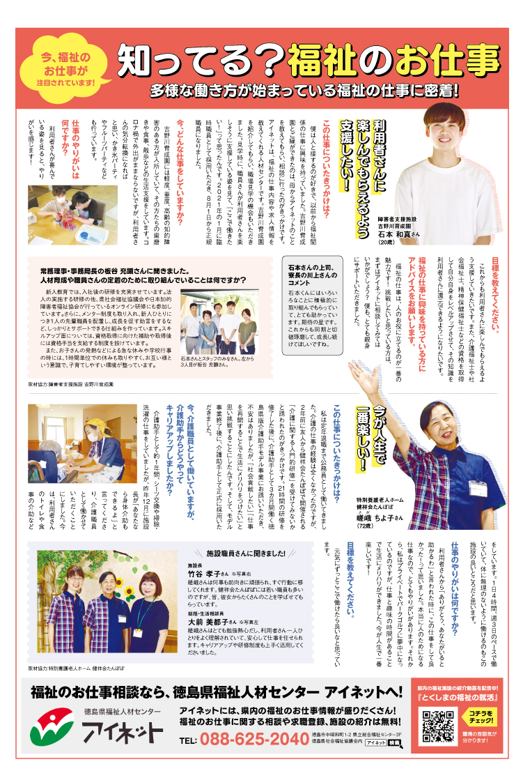 この記事は公開から1年以上経過しています メディア掲載記事 2021年9月2日(木) 知ってる?福祉のお仕事|さらら ■さらら 9.2号 [記事公開日]2021/09/17(金) 健祥会たんぽぽ 知ってる?福祉のお仕事|さらら 新しい記事 夢に向かってラストスパート! EPA介護福祉士候補者集中講義に臨む 古い記事 障害者の日常生活 高校生が疑似体験 | 徳島新聞 過去の記事へ