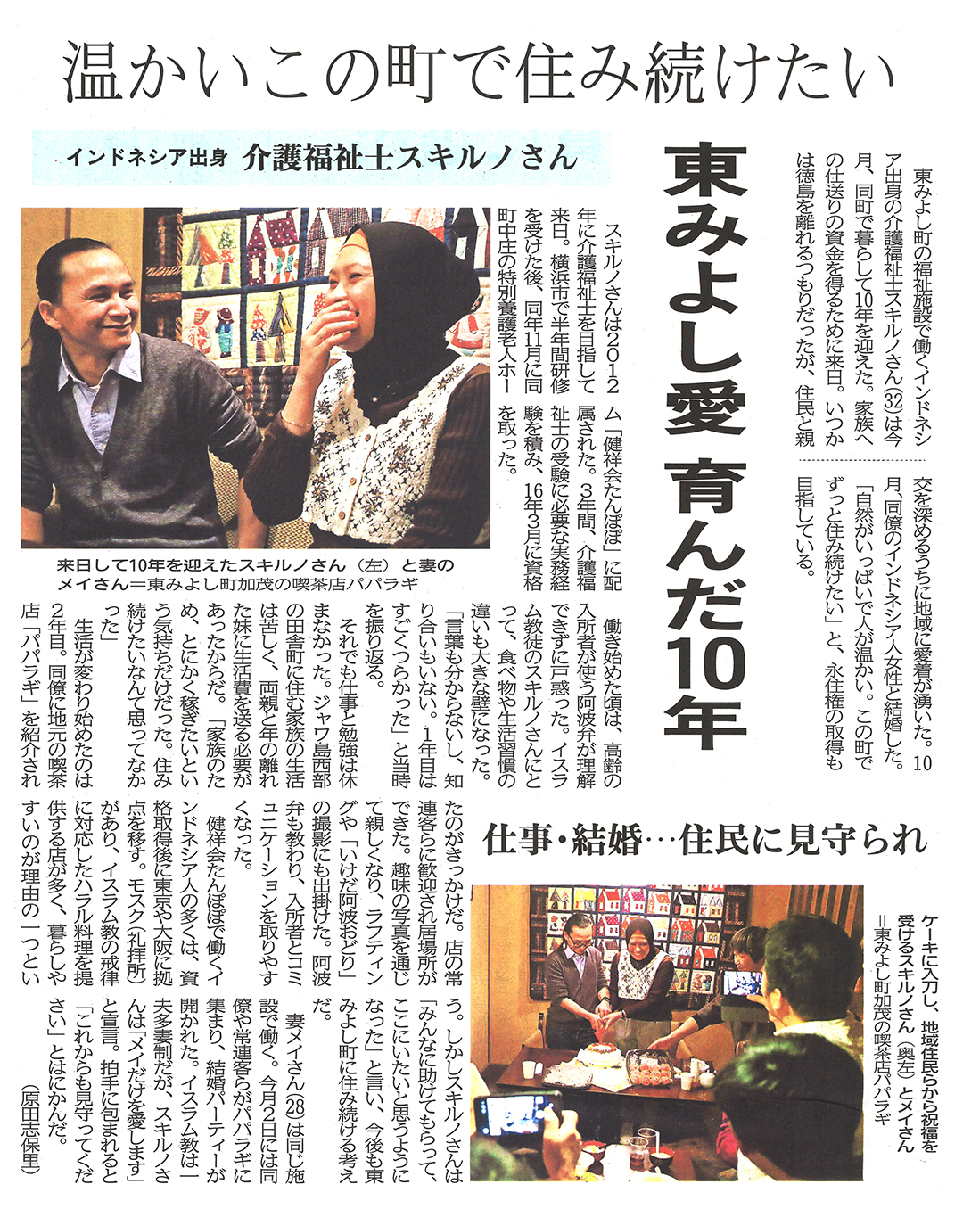 この記事は公開から1年以上経過しています メディア掲載記事 2022年11月6日(日) 温かいこの町で住み続けたい東みよし愛 育んだ10年 | 徳島新聞 ■徳島新聞(2022年11月6日朝刊) [記事公開日]2022/11/07(月) 健祥会たんぽぽ 温かいこの町で住み続けたい 東みよし愛 育んだ10年 | 徳島新聞 新しい記事 施設の献血活動に感謝状 特別養護老人ホーム水明荘・グループホーム濃姫 古い記事 公益財団法人JKA 補助事業で チロルデイサービスセンターにリフト式福祉車両 過去の記事へ