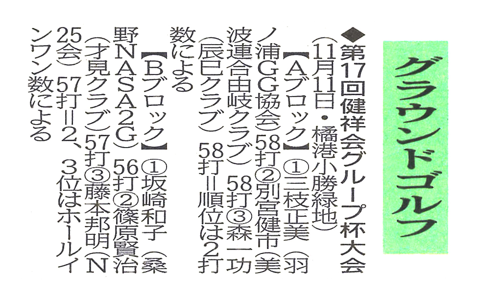 この記事は公開から1年以上経過しています メディア掲載記事 2022年11月28日(月) グラウンドゴルフ 第17回 健祥会グループ杯大会 | 徳島新聞 ■徳島新聞(2022年11月28日朝刊) [記事公開日]2022/11/28(月) グラウンドゴルフ 第17回 健祥会グループ杯大会 | 徳島新聞 新しい記事 介護老人保健施設マリアンヌ 京都で節目の10周年 古い記事 18団体と7人 献血功労表彰 | 徳島新聞 過去の記事へ