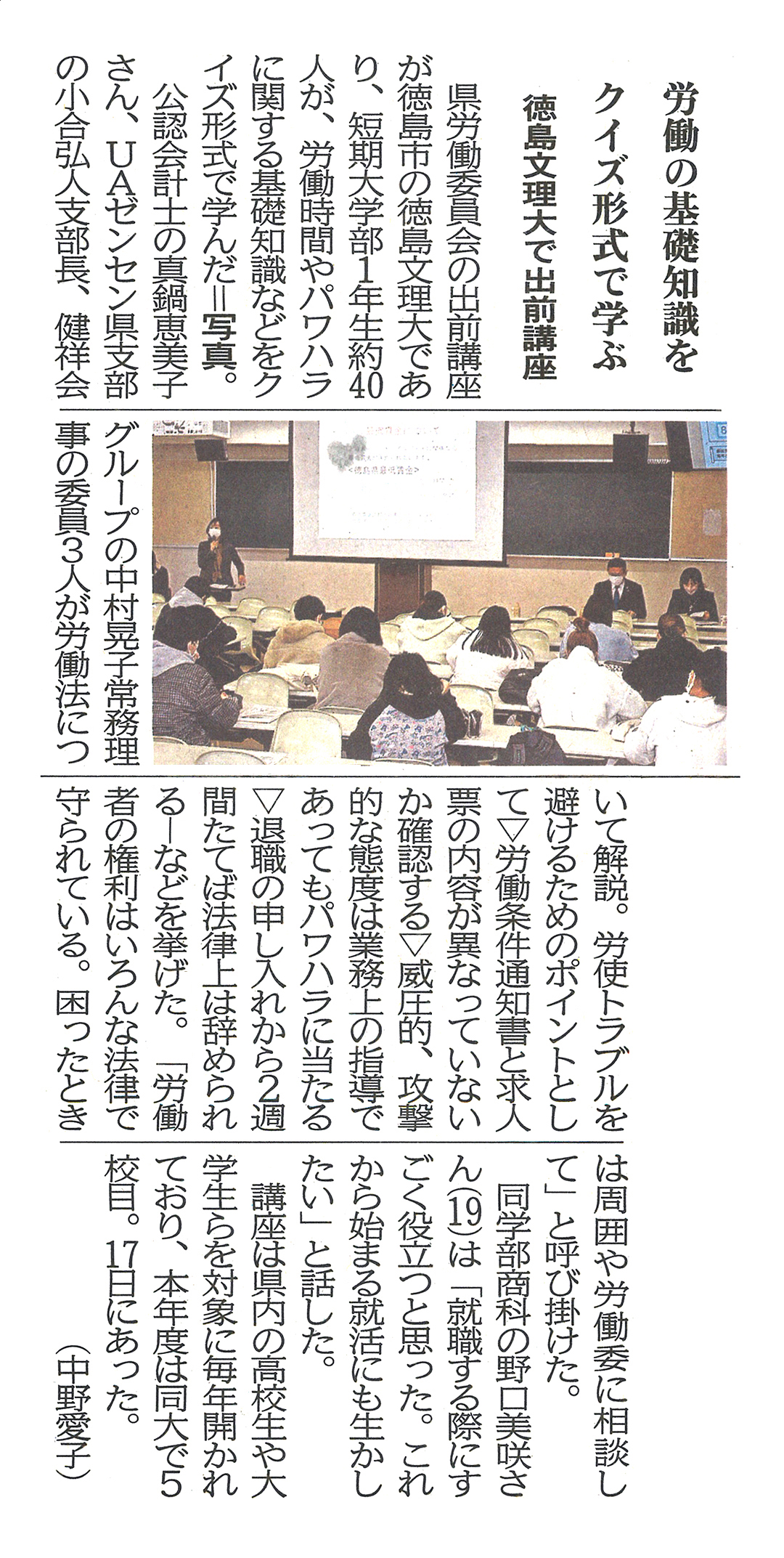 労働の基礎知識をクイズ形式で学ぶ | 徳島新聞