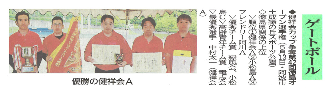 この記事は公開から1年以上経過しています メディア掲載記事 2023年6月13日(火) ゲートボール健祥会カップ争奪 第42回徳島オープン選手権 | 徳島新聞 ■徳島新聞(2023年6月13日朝刊) [記事公開日]2023/06/14(水) ゲートボール 健祥会カップ争奪 第42回徳島オープン選手権 | 徳島新聞 新しい記事 園児のアート 色鮮やか | 読売新聞 古い記事 健祥会グループ常務理事 中村晃子 徳島県経営者協会の副会長に就任 過去の記事へ