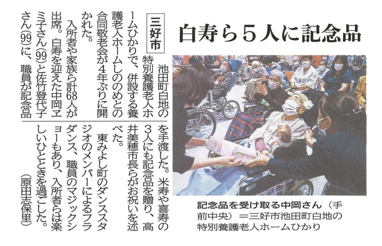 白寿ら5人に記念品 | 徳島新聞