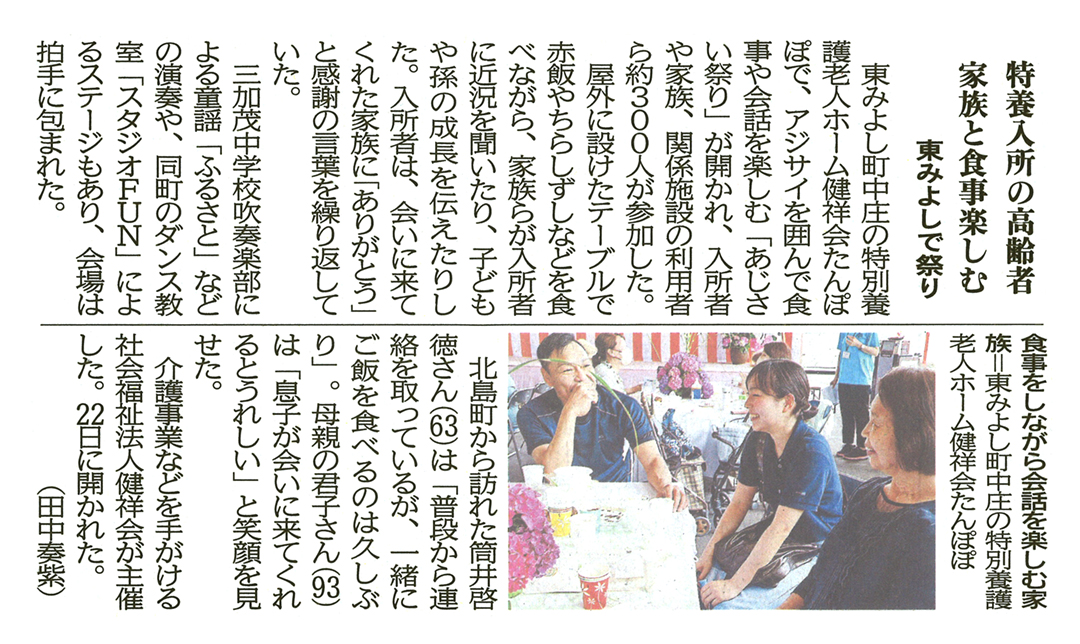 特養入所の高齢者 家族と食事楽しむ | 徳島新聞