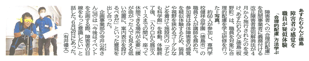 障害者の感覚を職員が類似体験 | 徳島新聞