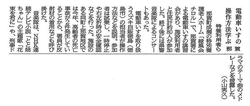 電動車いすの操作方法学ぶ 那賀 特養利用者ら │ 徳島新聞