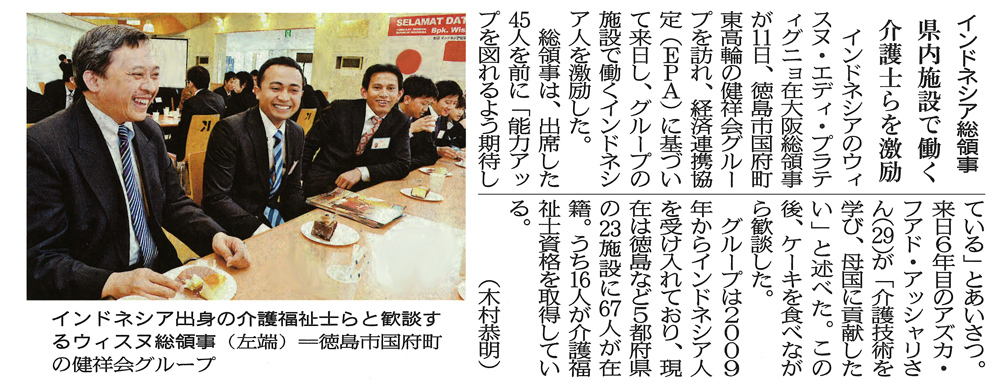 インドネシア総領事 県内施設で働く 介護士らを激励 │ 徳島新聞