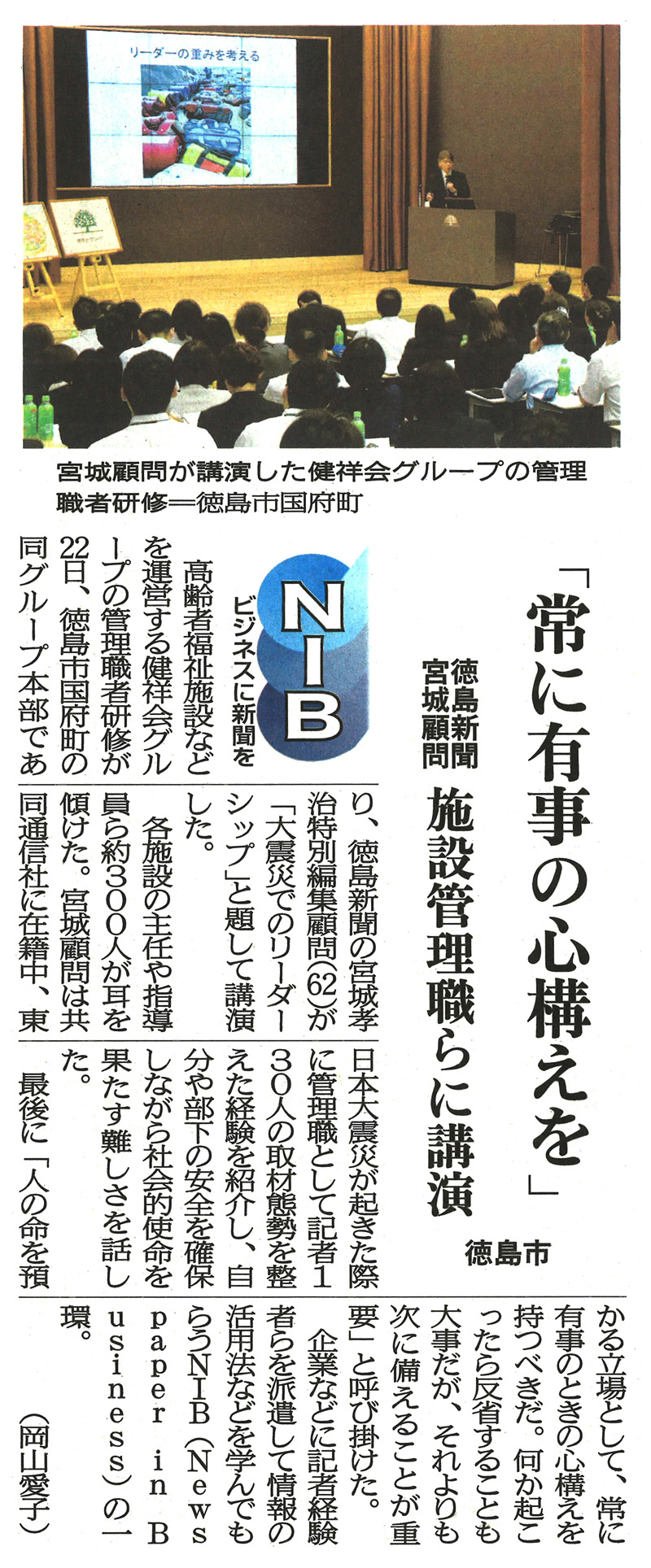 常に有事の心構えを 施設管理職者らに講演|徳島新聞
