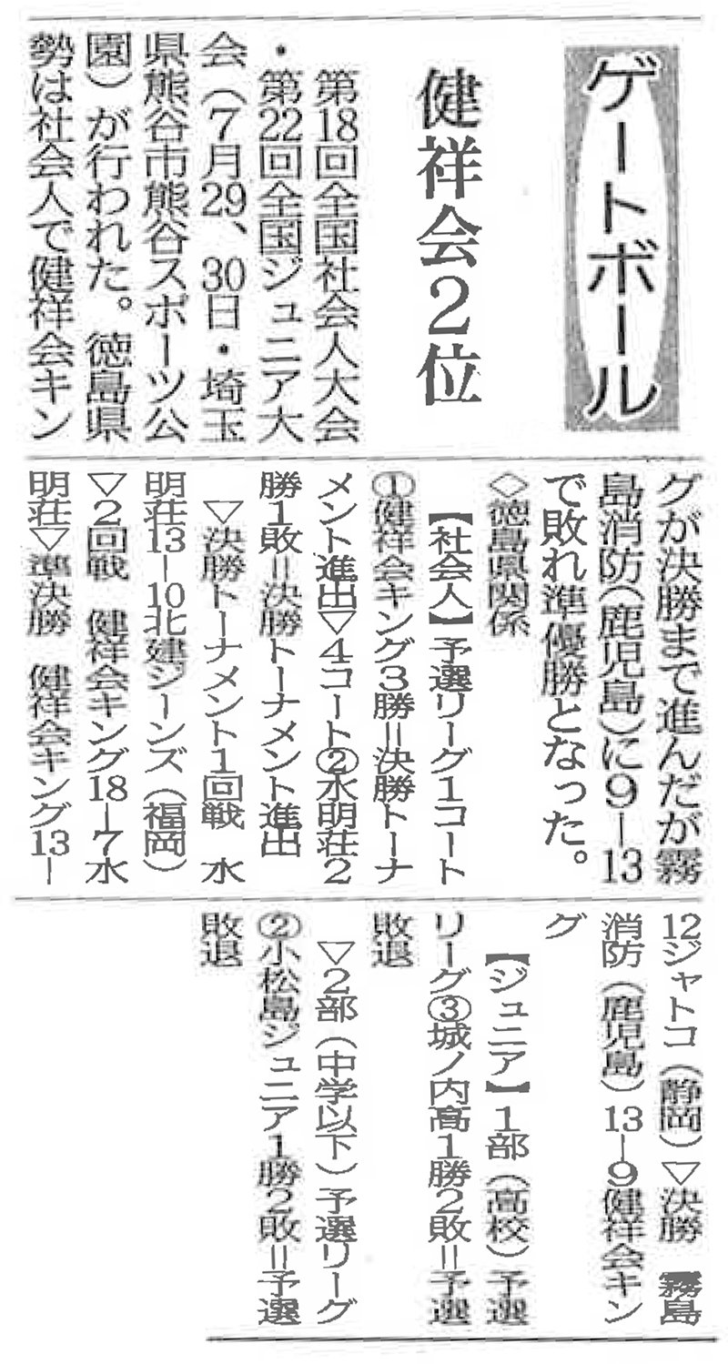 この記事は公開から1年以上経過しています メディア掲載記事 2017年8月7日(月) ゲートボール 健祥会2位 | 徳島新聞 ■徳島新聞(2017年8月7日) [記事公開日]2017/08/10(木) 全国社会人ゲートボール大会 ゲートボール 健祥会2位 | 徳島新聞 新しい記事 認知症の立場で支援方法を考える 池田高校で養成講座|徳島新聞 古い記事 暮らしの悩み 連携対処 | 徳島新聞 過去の記事へ