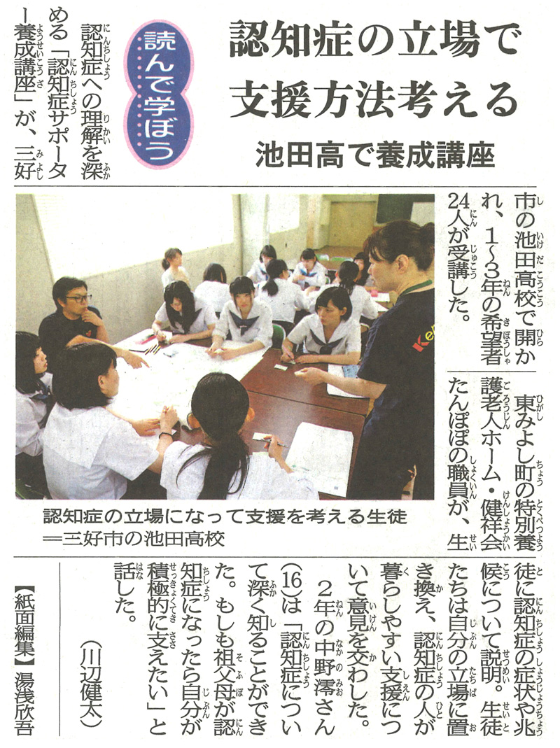 この記事は公開から1年以上経過しています メディア掲載記事 2017年8月9日(水) 認知症の立場で支援方法を考える池田高校で養成講座|徳島新聞 ■徳島新聞(2017年8月9日) [記事公開日]2017/08/14(月) 健祥会たんぽぽ認知症サポーター養成講座 認知症の立場で支援方法を考える 池田高校で養成講座|徳島新聞 新しい記事 フラダンス盛んな拍手|徳島新聞 古い記事 ゲートボール 健祥会2位 | 徳島新聞 過去の記事へ
