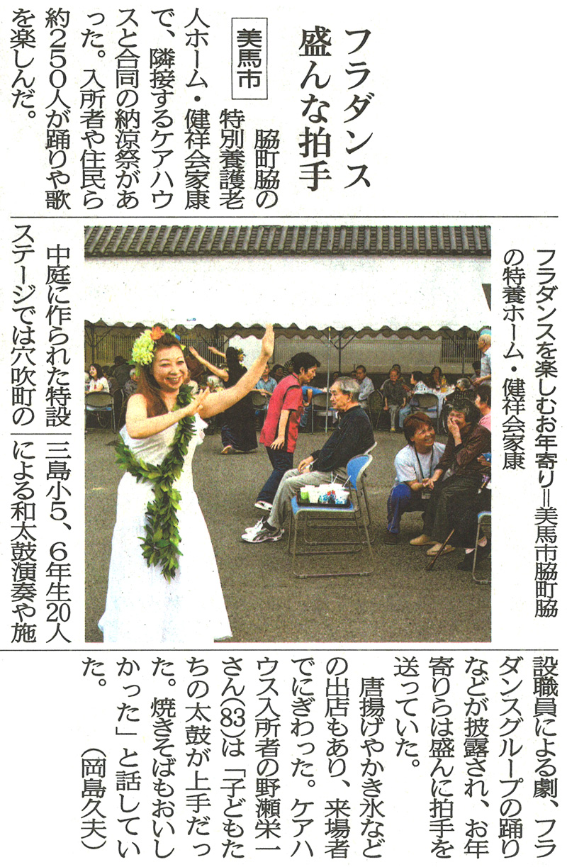 この記事は公開から1年以上経過しています メディア掲載記事 2017年8月9日(水) フラダンス盛んな拍手|徳島新聞 ■徳島新聞(2017年8月9日) [記事公開日]2017/08/15(火) 健祥会家康納涼祭 フラダンス盛んな拍手|徳島新聞 新しい記事 あたたかなご声援に 心からの「ありがとう」を! 古い記事 認知症の立場で支援方法を考える 池田高校で養成講座|徳島新聞 過去の記事へ