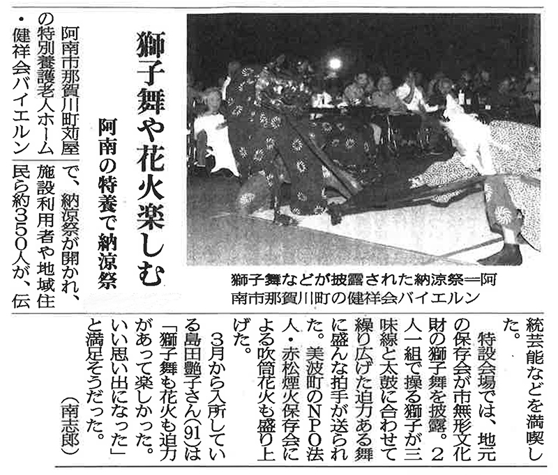 この記事は公開から1年以上経過しています メディア掲載記事 2017年9月15日(金) 獅子舞や花火を楽しむ | 徳島新聞 ■徳島新聞(2017年9月15日) [記事公開日]2017/09/19(火) 健祥会バイエルン納涼祭 獅子舞や花火を楽しむ | 徳島新聞 新しい記事 老人福祉施設にブドウ60キロ贈る | 徳島新聞 古い記事 特養入所者にアジサイ贈る | 徳島新聞 過去の記事へ