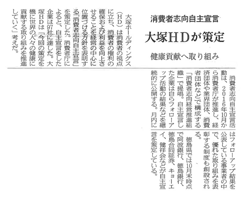 消費者志向自主宣言 大塚HDが策定 | 日本経済新聞