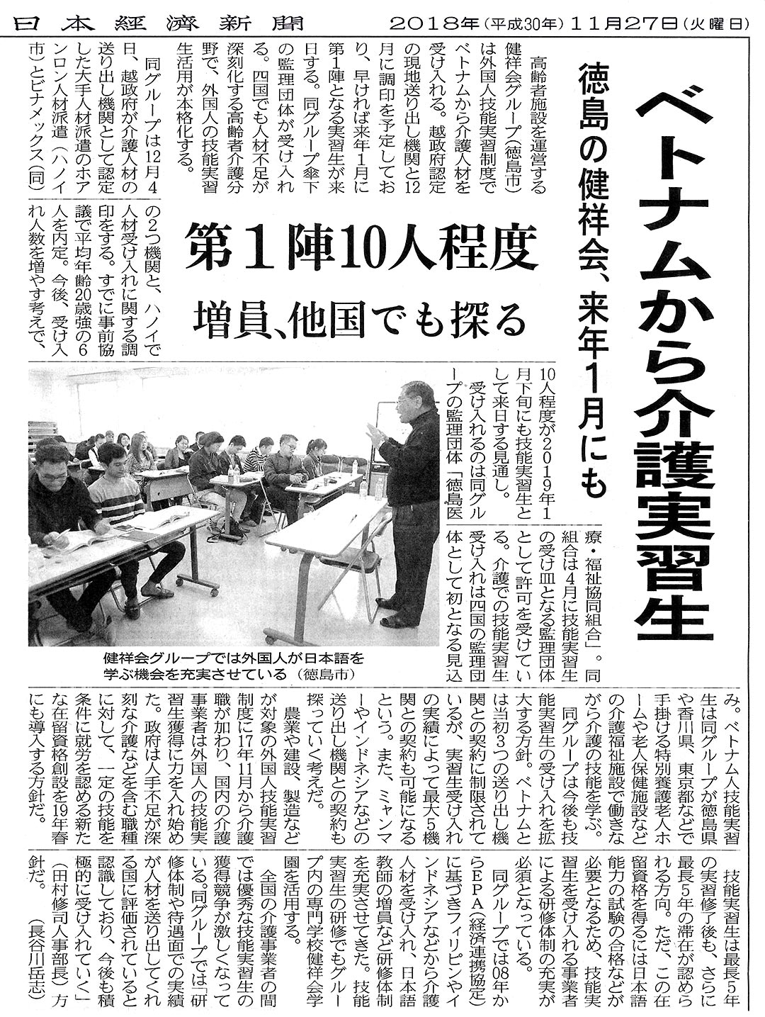 ベトナムから介護実習生 徳島の健祥会、来年1月にも│日本経済新聞