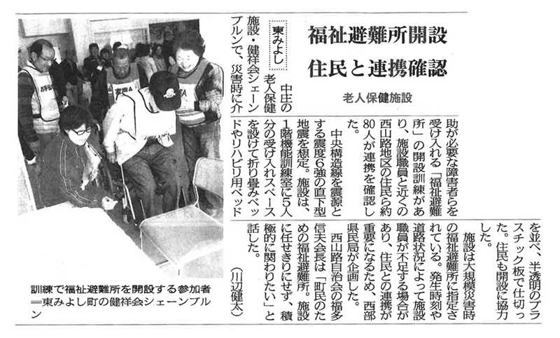 この記事は公開から1年以上経過しています メディア掲載記事 2018年11月27日(火) 福祉避難所開設 住民と連携確認 | 徳島新聞 ■徳島新聞(2018/11/27)掲載 [記事公開日]2018/12/07(金) [最終更新日]2019/01/07(月) 健祥会シェーンブルン 福祉避難所開設 住民と連携確認 | 徳島新聞 新しい記事 開所20年 130人祝う | 徳島新聞 古い記事 Thông tin mới ベトナムからのマッチング便り 過去の記事へ