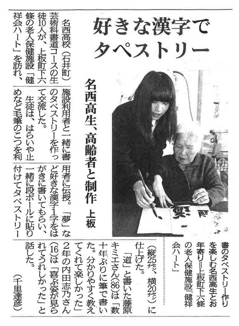 この記事は公開から1年以上経過しています メディア掲載記事 2018年12月10日(月) 好きな漢字でタペストリー | 徳島新聞 ■徳島新聞(2018/12/10)掲載 [記事公開日]2019/01/07(月) 健祥会ハート 好きな漢字でタペストリー | 徳島新聞 新しい記事 業務に役立つ思考養う | 徳島新聞 古い記事 あけましておめでとうございます! 過去の記事へ