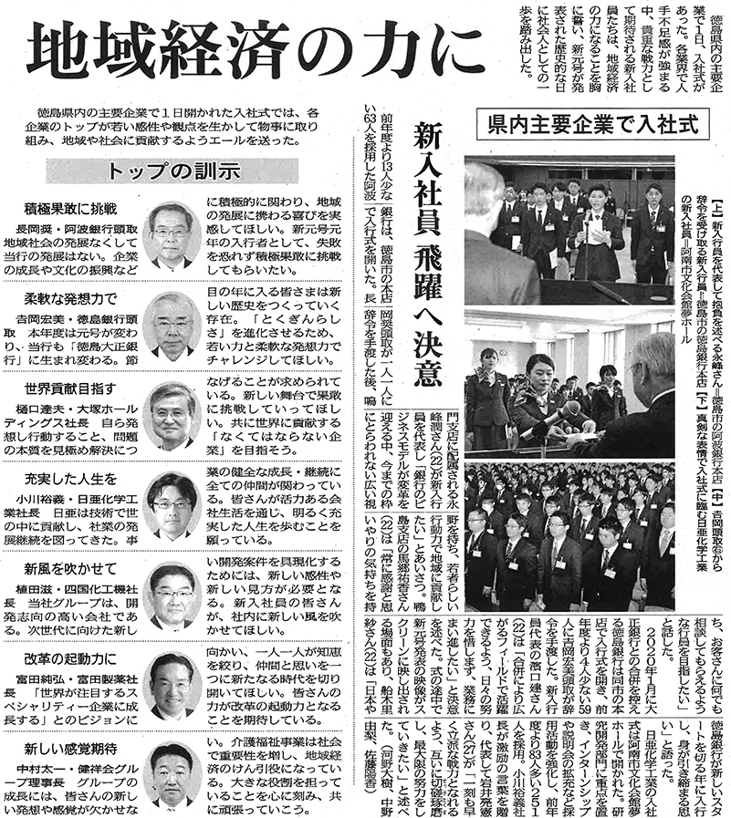 この記事は公開から1年以上経過しています メディア掲載記事 2019年4月2日(火) 地域の経済の力に | 徳島新聞 ■徳島新聞(2019/04/02掲載) [記事公開日]2019/04/02(火) 入社式 地域の経済の力に | 徳島新聞 新しい記事 16名のお友だち、 ようこそ青嵐認定こども園へ 古い記事 35周年にありがとう! 軽費老人ホーム健祥会ヴィラ 過去の記事へ